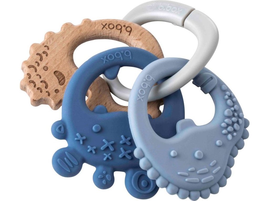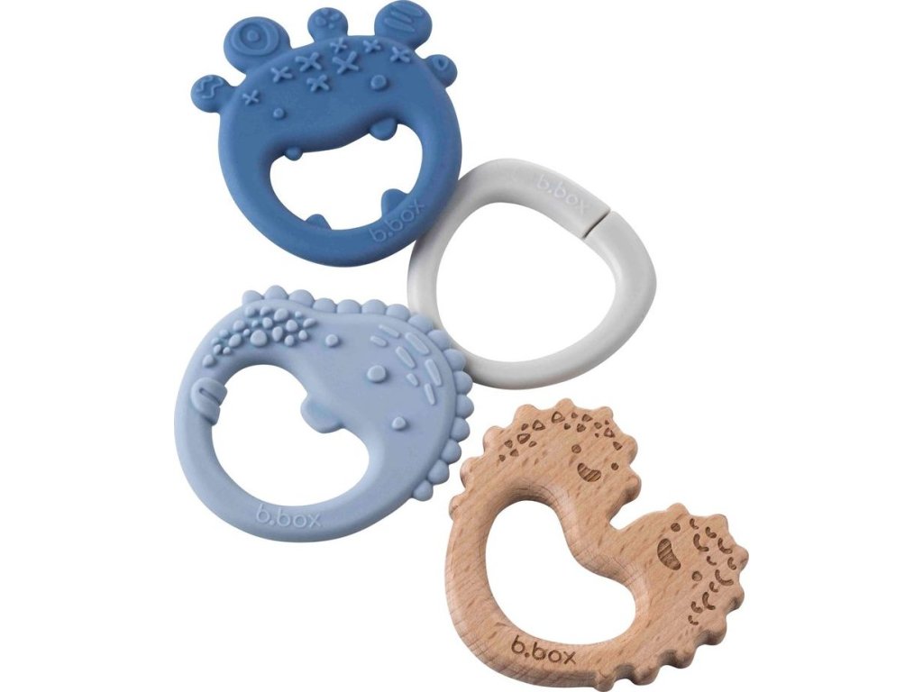 Představujeme vám b.box Trio kousátko, které uleví bolavým dásním a zároveň stimuluje senzorické schopnosti. Tři texturovaná kousátka na šikovném kroužku nabízí dítěti výběr mezi dvěmi silikonovými kousátky a dřevěným kousátkem. Kousátka jsou lehká a velmi dobře padnou do dětských ruček. Lze je používat samostatně nebo v setu na kroužku.