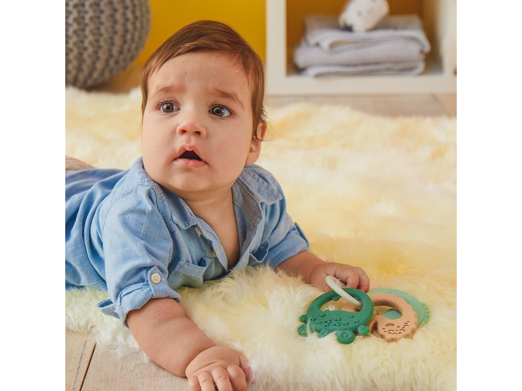 Kousátko je vhodné pro děti od 3 měsíců věku a bude jej provázet od prořezávání prvních zoubků až k těm posledním. Měkký silikon je ideální pro první fáze prořezávání zoubků. Na kousátku vyrobeného ze středně tvrdého silikonu jsou výlisky a malé výstupky, aby s ním dítě dosáhlo dále do pusinky a ulevilo bolesti při prořezávání zoubků umístěných dále v pusince. Dřevěné kousátko je navrženo tak, aby bylo možné jej kousat až na zadních zubech.