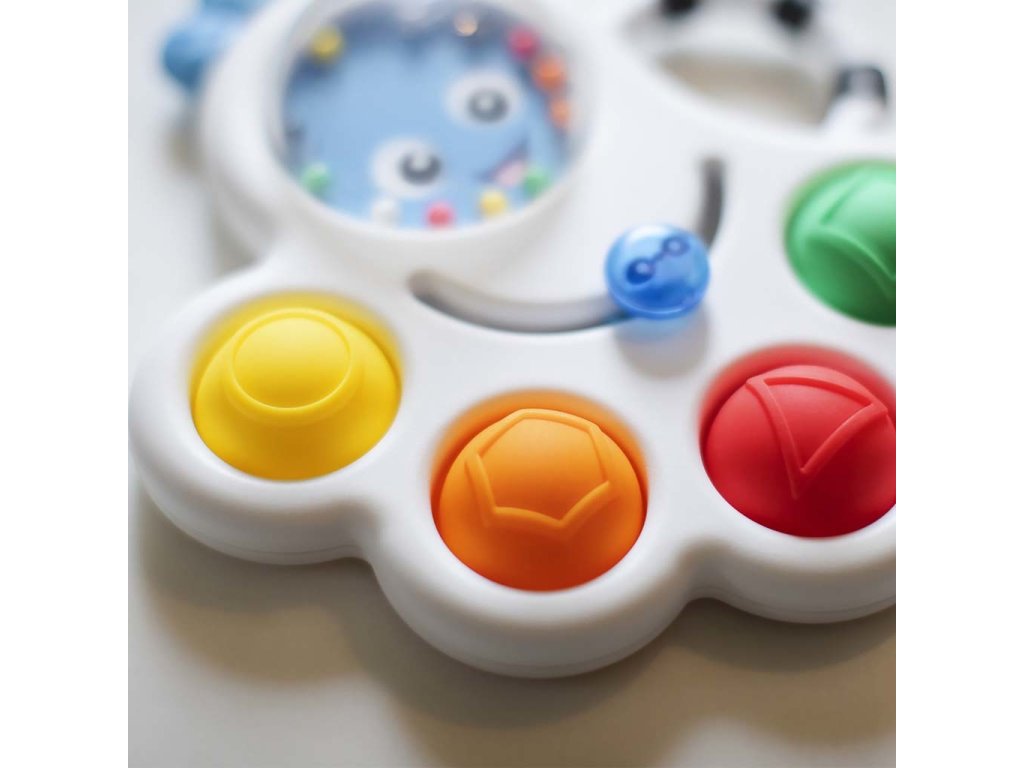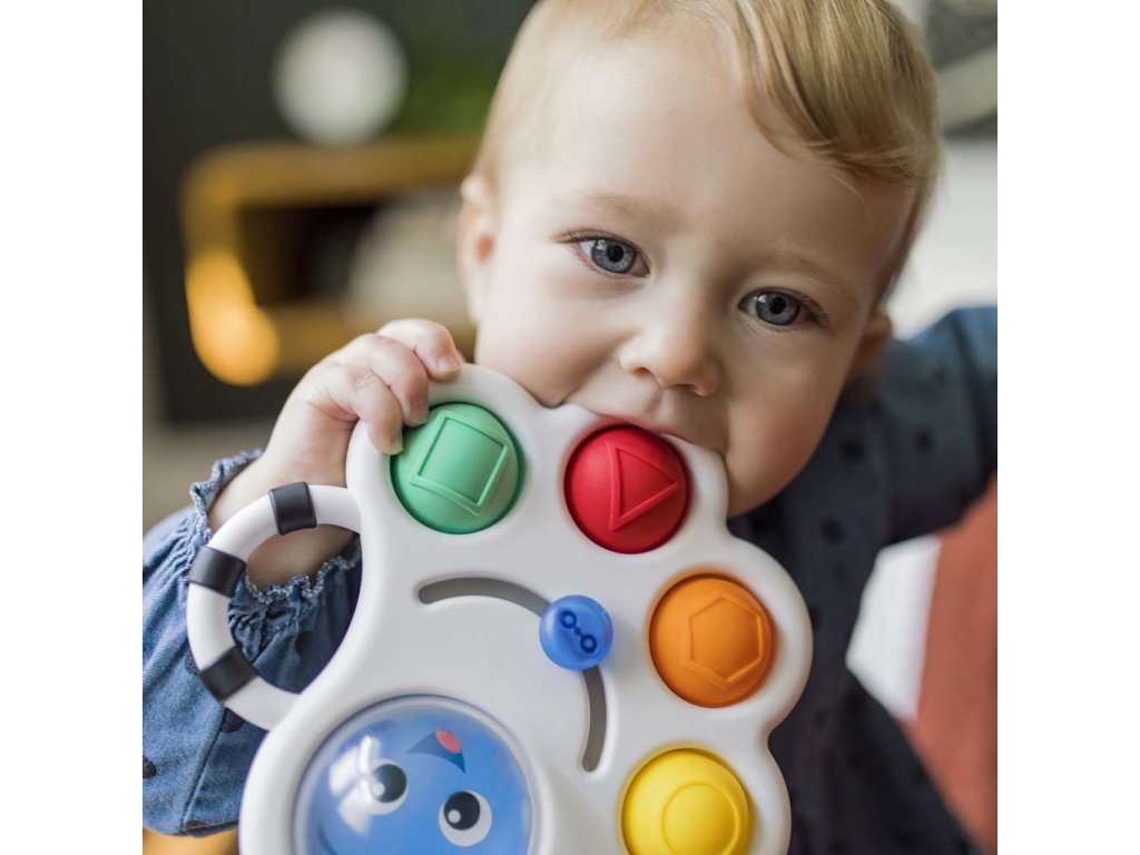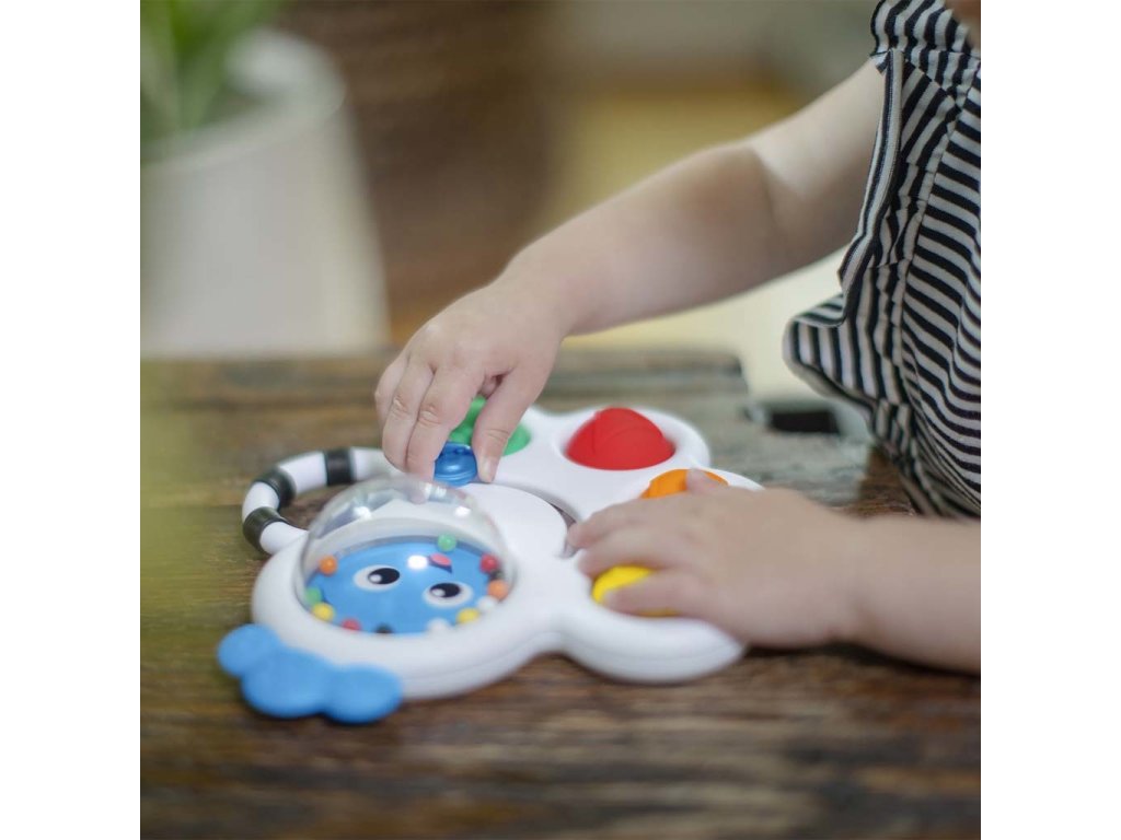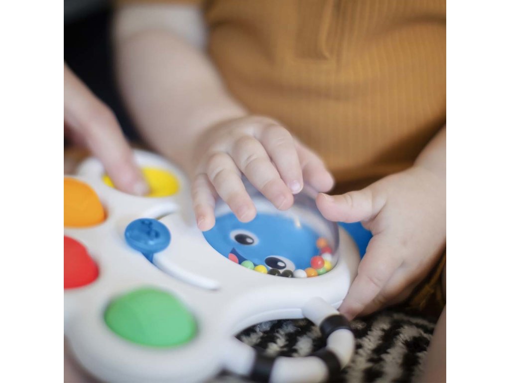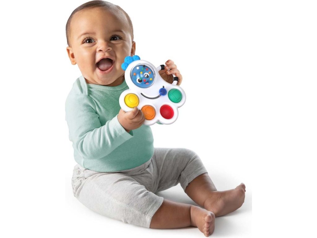 Hračka Opus Shape Pops ™ 3 v 1 je kousátko, chrastítko a senzorická hračka, která jistě zaujme a udrží pozornost vašeho děťátka. Její barevné a měkké bublinky jsou pro dítě tak zábavné, že jejich nepřestane šoupat a mačkat, protože ho odměňují jemným zvukem praskání. Chobotnička Opus je jednou z oblíbených postaviček z knih a videí Baby Einstein ™ na YouTube. Díky několika aktivitám na jednom místě, hračka vybízí ke kreativní hře a také části na kousání uklidní bolavé dásně při prořezávání prvních zoubků.