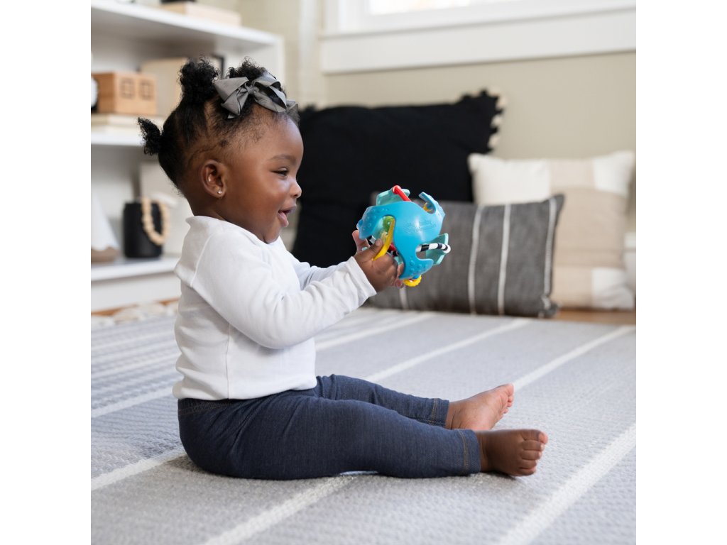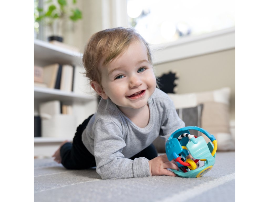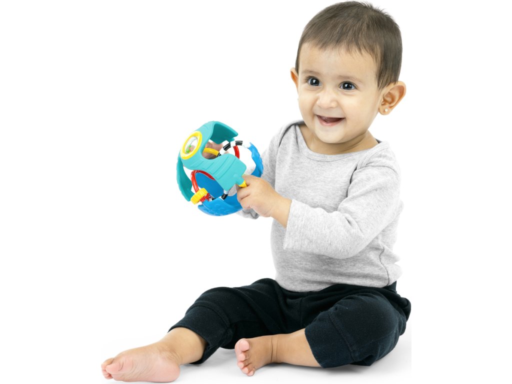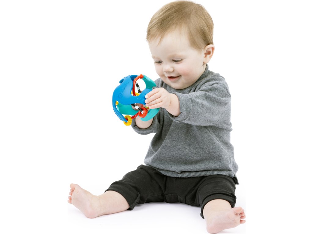 Třeste a objevujte! Senzorická hračka je ideální hračkou pro děti od 3 měsíců, které začínají objevovat svět přes dotek, zvuk a barvy. Tento míček lehce padne do držadla a nabízí řadu smyslových podnětů, které podporují vývoj miminka a učení hrou. Tři korálkové dráhy pomáhají rozvíjet jemnou motoriku a různé textury jsou ideální pro hmatové objevování. Miminka milují sledování pohybujících se korálků a učí se principu příčina-následek, když každé zatřesení vytvoří zvuk! Zářivé barvy a výrazné vzory podporují zrakový vývoj. Hračka byla nezávisle testována a schválena z hlediska bezpečnosti. Objevování nikdy nebylo zábavnější!