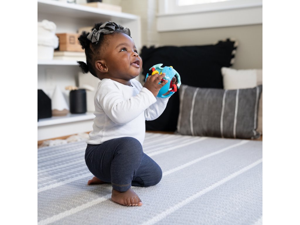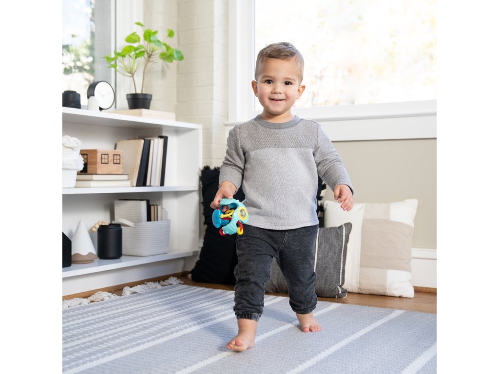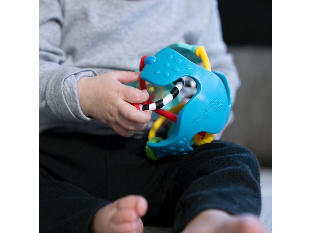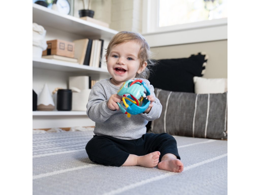 Třeste a objevujte! Senzorická hračka je ideální hračkou pro děti od 3 měsíců, které začínají objevovat svět přes dotek, zvuk a barvy. Tento míček lehce padne do držadla a nabízí řadu smyslových podnětů, které podporují vývoj miminka a učení hrou. Tři korálkové dráhy pomáhají rozvíjet jemnou motoriku a různé textury jsou ideální pro hmatové objevování. Miminka milují sledování pohybujících se korálků a učí se principu příčina-následek, když každé zatřesení vytvoří zvuk! Zářivé barvy a výrazné vzory podporují zrakový vývoj. Hračka byla nezávisle testována a schválena z hlediska bezpečnosti. Objevování nikdy nebylo zábavnější!