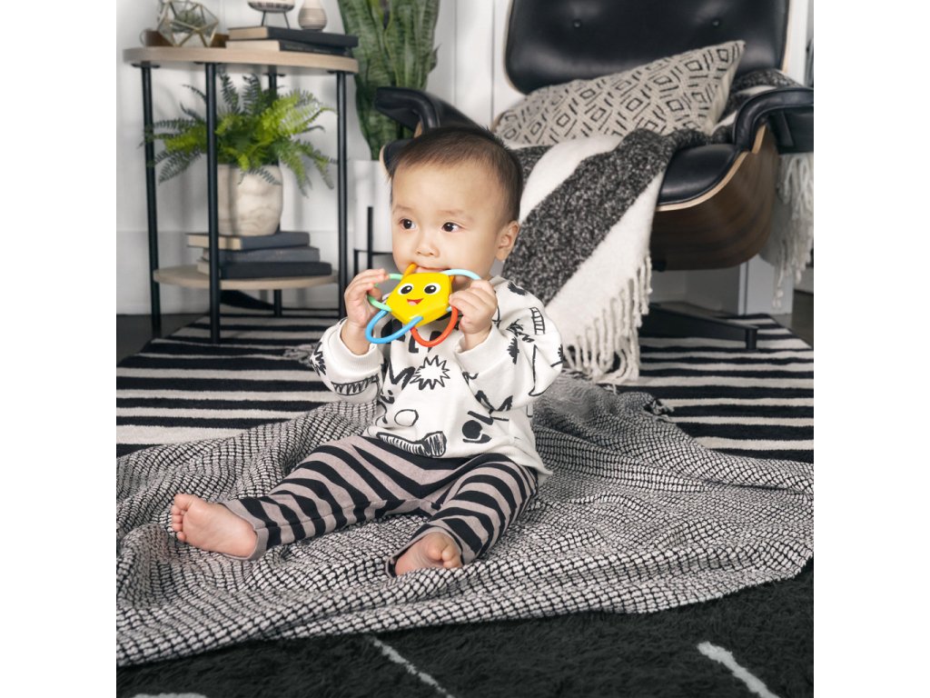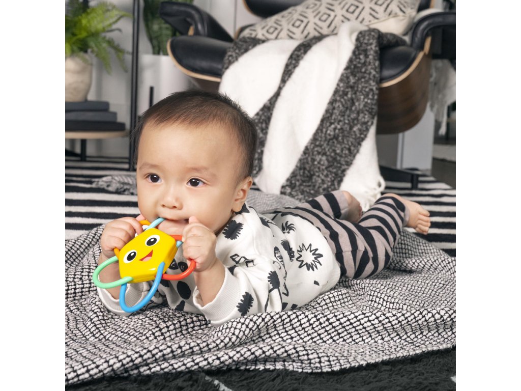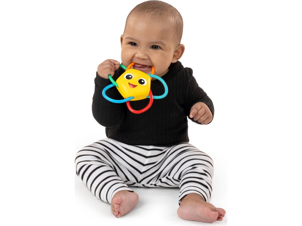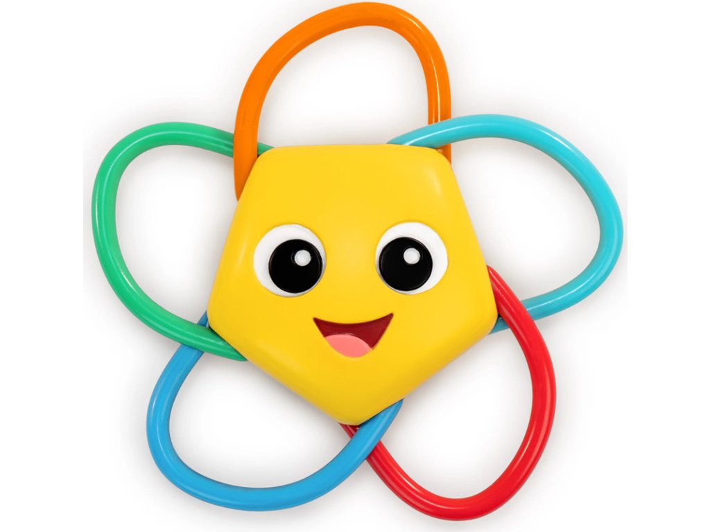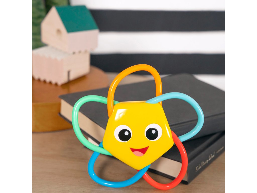 Přátelská tvář hvězdice vítá děťátko s úsměvem a při zatřesení zazvoní, aby zaujala a potěšila děťátko, když se učí příčinu a následek. Tato hračka na prořezávání zoubků, která se snadno drží a třese, se stane oblíbeným uklidňujícím kamarádem k úlevě při prořezávání zoubků a bude si hrát doma nebo na cestách.