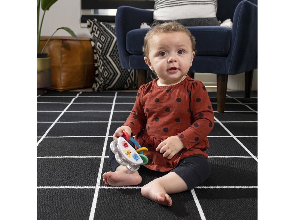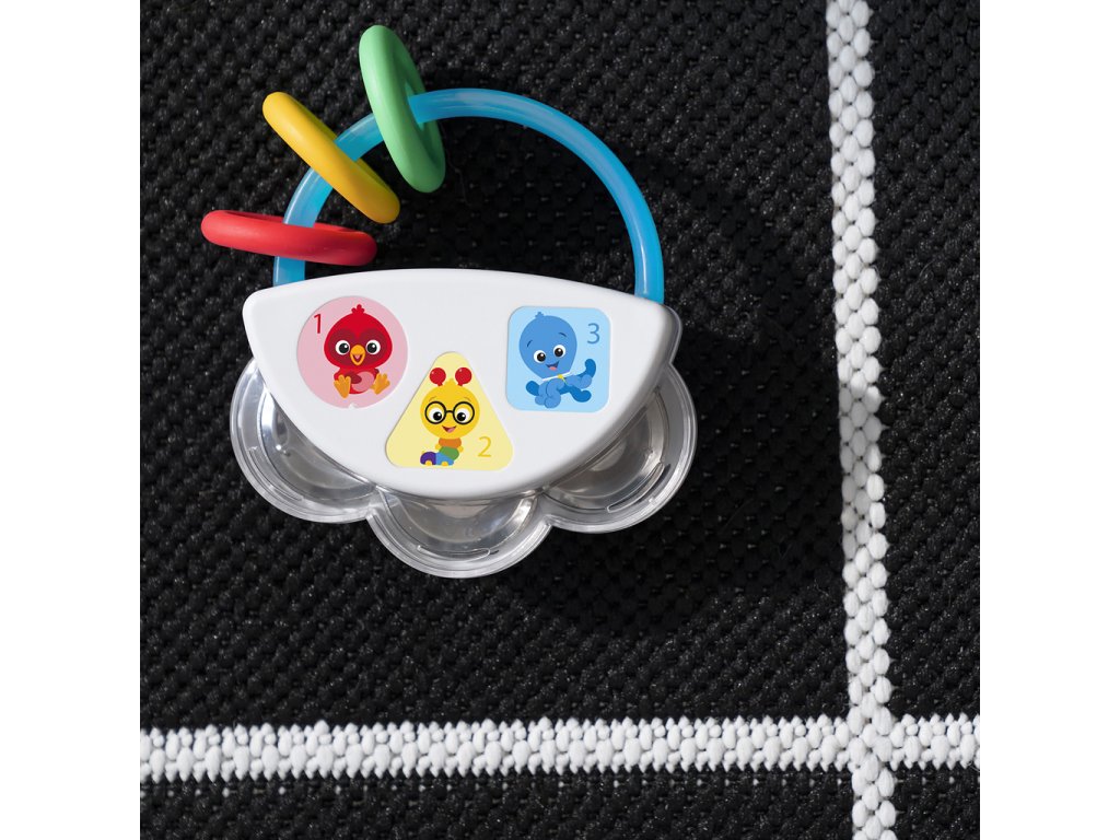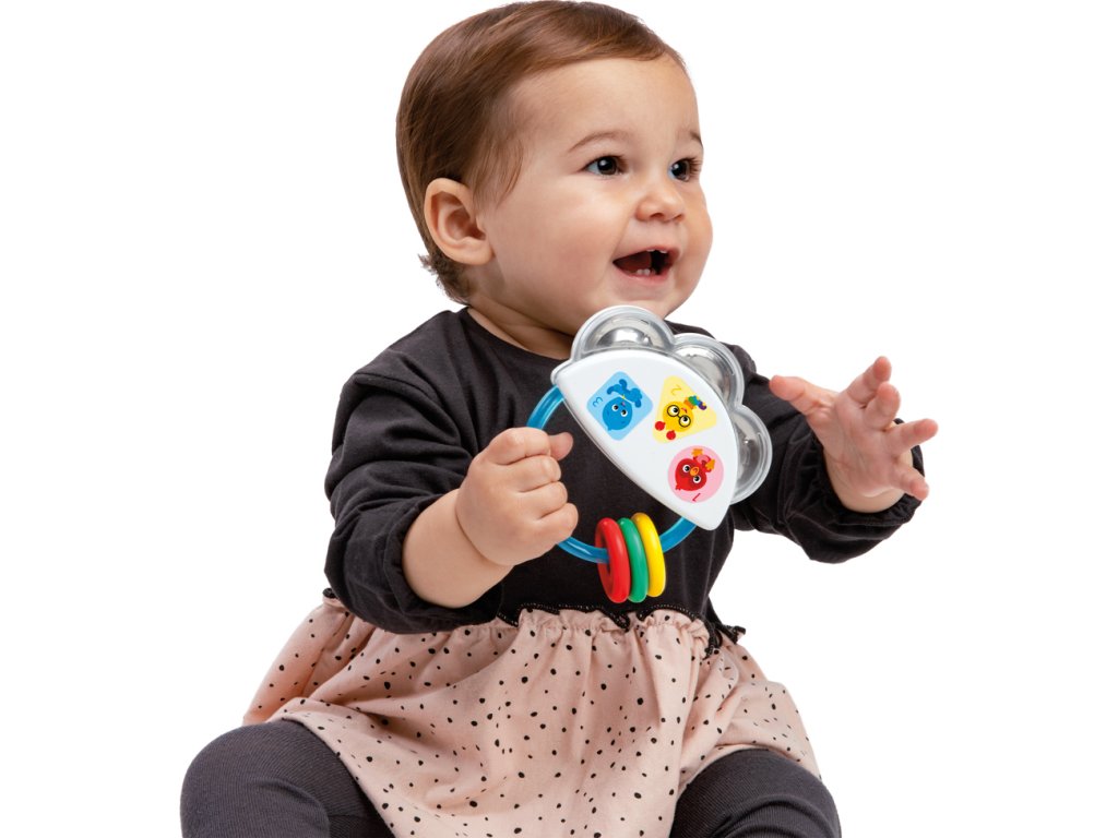 Miminko bude nadšeno objevováním hudebního světa s tamburínou a chrastítkem Tiny Tamburine od Baby Einstein. Tato malá tamburína se skutečným zvukem vyzvánění a posuvnými korálky pomáhá budovat jemné motorické a kognitivní dovednosti, kde prostřednictvím hudební hry posiluje vnímání příčiny a následku. Hračka je lehká a pro děťátko snadno uchopitelná. Tlumené zvonění, které potěší hlavně rodiče, nezpůsobí velký hluk při hře doma či na cestách. Obsahuje oblíbené postavičky Roxy červený pták, Cal housenku a Opus chobotnici z videí Baby Einstein.