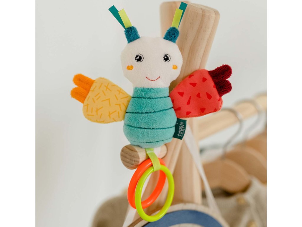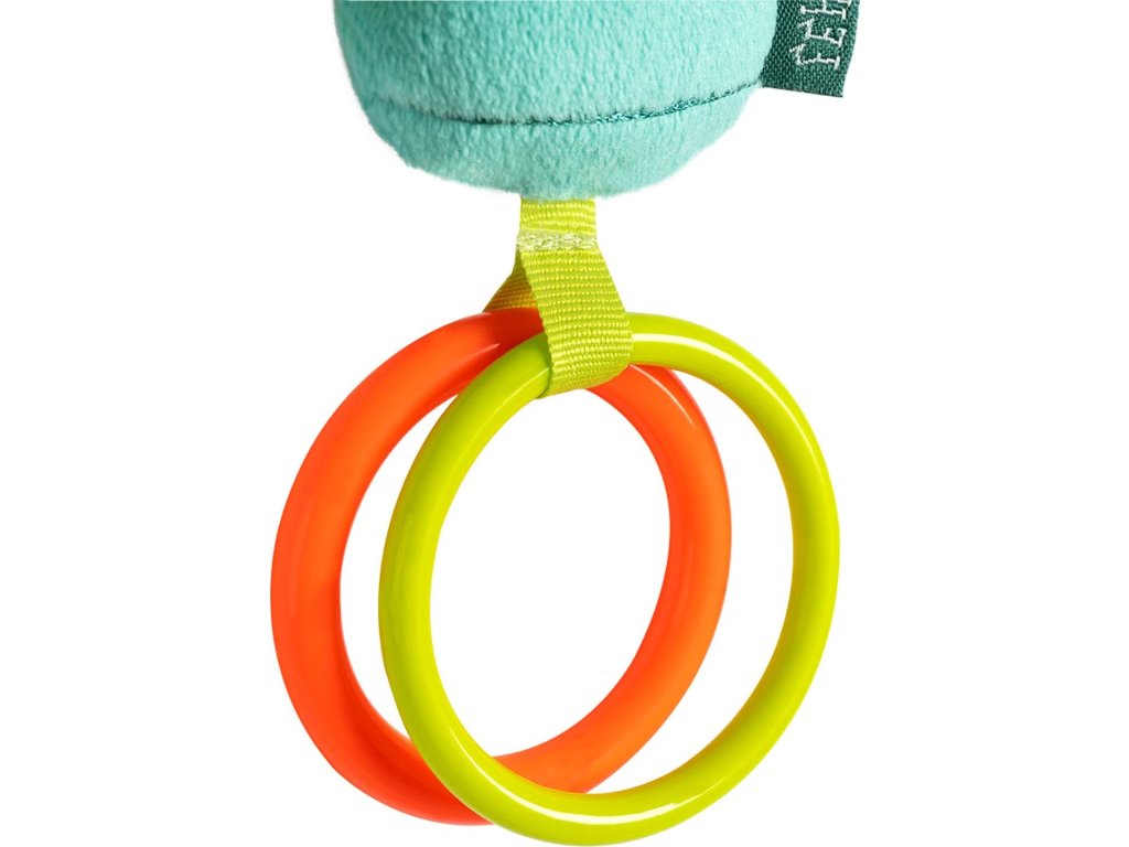 Plyšové chrastítko se spoustou aktivity prvků jako je úchopový kroužek, chrastítko, pískací mechanismus a skřípavý papír. Hračka na uchopení hravě podporuje sluch dítěte, smysl pro zrak, hmat, zdravé uchopení– ideální jako dáreček pro chlapce a dívky k narození, narozeninám či křtu.