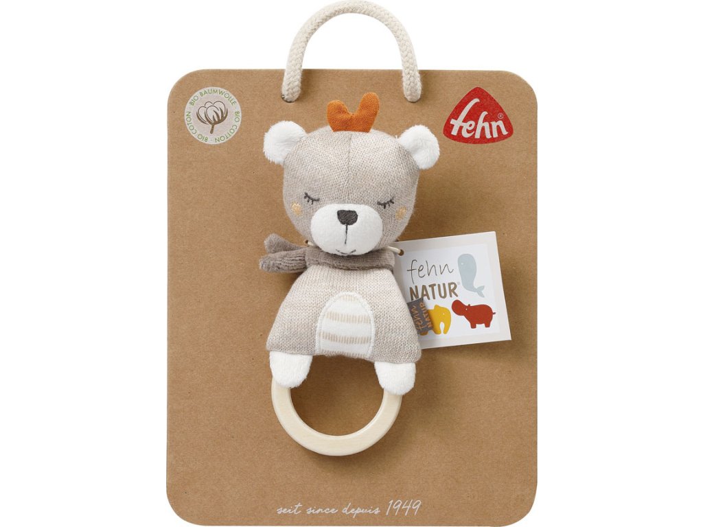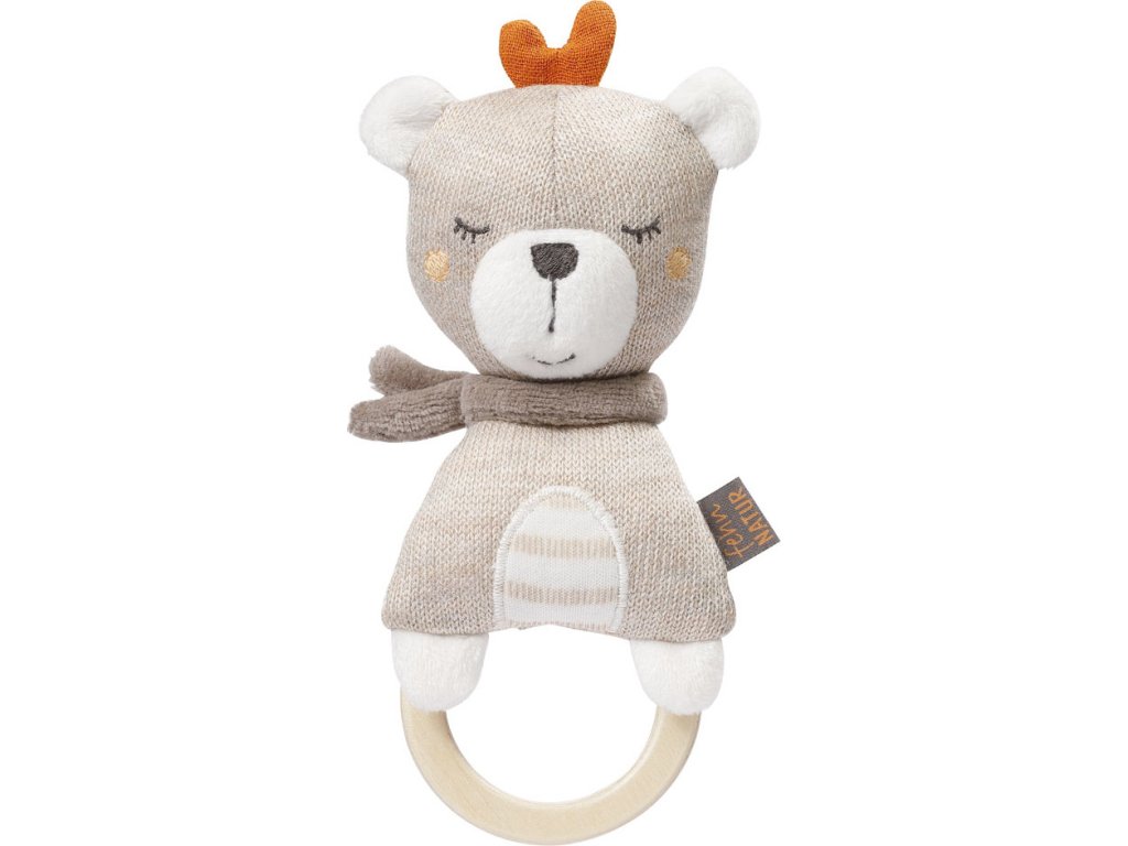 BABY FEHN Plyšový medvídek s dřevěným držákem