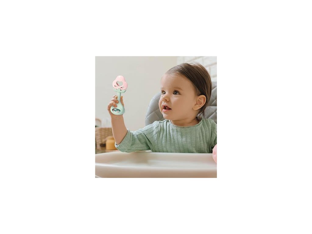 Stimulující zvuky - při potřesení chrastítko vydává jemné zvuky, které upoutají pozornost dítěte a rozvíjejí jeho sluch.