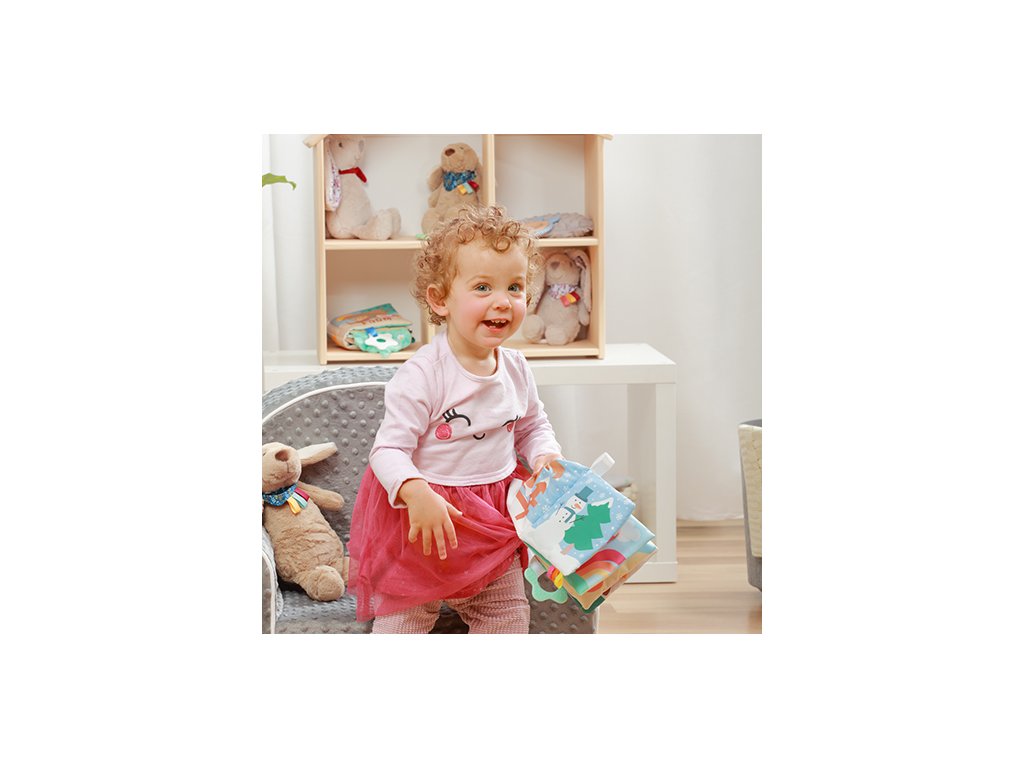 Měkká a barevná knížka je odpovědí na kognitivní potřeby Vašeho děťátka. Hračka bude provázet Vašeho prcka během jeho raných vývojových stadií a bude stimulovat růst jeho zrakových, sluchových a motorických koordinačních schopností. Pozorování zářivých barev a výrazných tvarů přinese miminku spoustu radosti a zapojí všechny jeho smysly. Knížka byla vyrobena z nejlepších bezpečných materiálů.