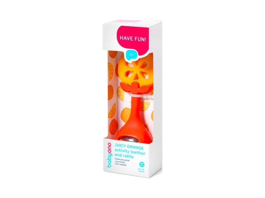 BABYONO BABYONO Kousátko edukační s chrastítkem - pomeranč