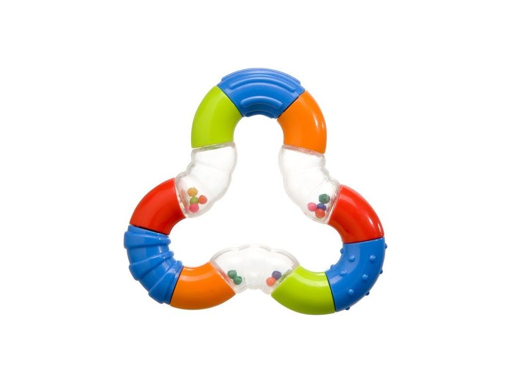 Edukační chrastítko, po stisknutí jednoho kolečka vystřeluje kuličky. Vyrobeno z pevného a bezpečného materiálu.