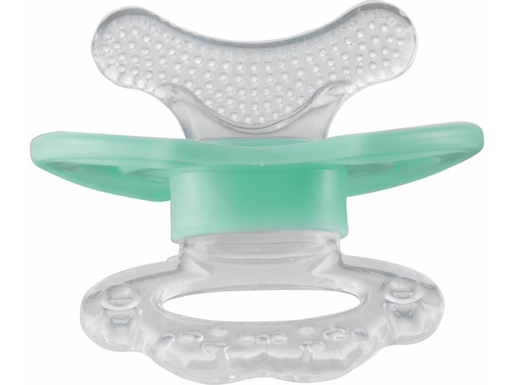 Kousátko ve tvaru šidítka uleví dětským dásním při prořezávání prvních zoubků. Měkký silikonový materiál jemně masíruje citlivé dásně. Víčko umožňuje hygienické přenášení.