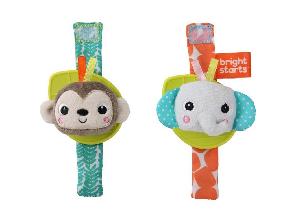 BRIGHT STARTS BRIGHT STARTS Chrastítko s kousátkem na ruku 2 ks opice/slon 0 m+