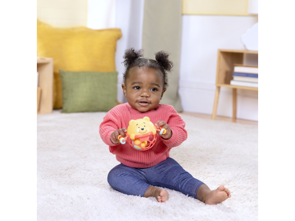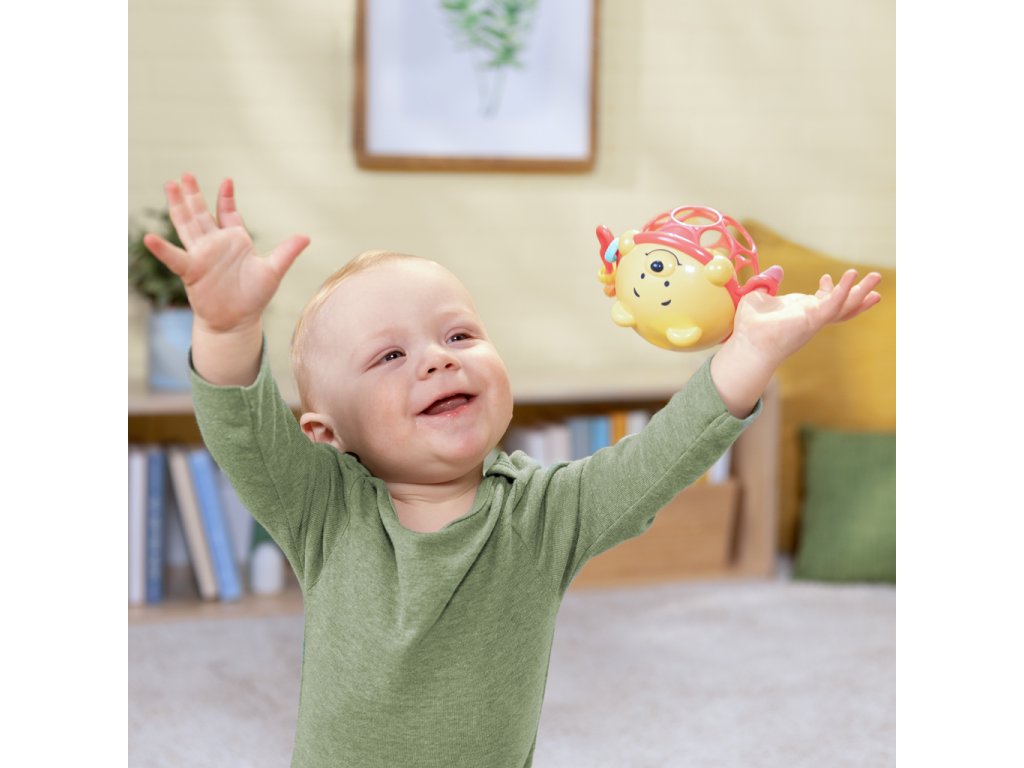 Rozzařte každé hraní s jemně chrastící hračkou s Medvídkem Pú od Bright Starts! Toto milé a barevné chrastítko je navrženo speciálně pro malé rukojeti a zvědavé dětské smysly – ideální již od narození. Unikátní tvar Oball je pružný, ohebný a snadno uchopitelný, díky čemuž si děťátko hravou formou rozvíjí jemnou motoriku. Při zatřesení se spustí jemné chrastění, které stimuluje sluch a barevné korálky na bocích povzbuzují hmatové vnímání. Lehké, přenosné a zábavné chrastítko s motivem milovaného Medvídka Pú je ideálním společníkem na doma i na cesty.