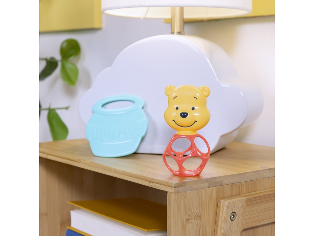 Rozzařte čas hraní nejmenších s touto roztomilou sadou Disney Baby Winnie the Pooh! Sada 2v1 obsahuje pružné, lehce uchopitelné chrastítko typu Oball s motivem milovaného Medvídka Pú a kousátko ve tvaru medového hrníčku pro úlevu od bolesti dásní při prořezávání se prvních zoubků. Přineste do hry kouzlo pohádky s veselými barvami a známými postavičkami. Perfektní dárek pro miminka na narozeniny, Vánoce nebo jako dárek na baby shower.