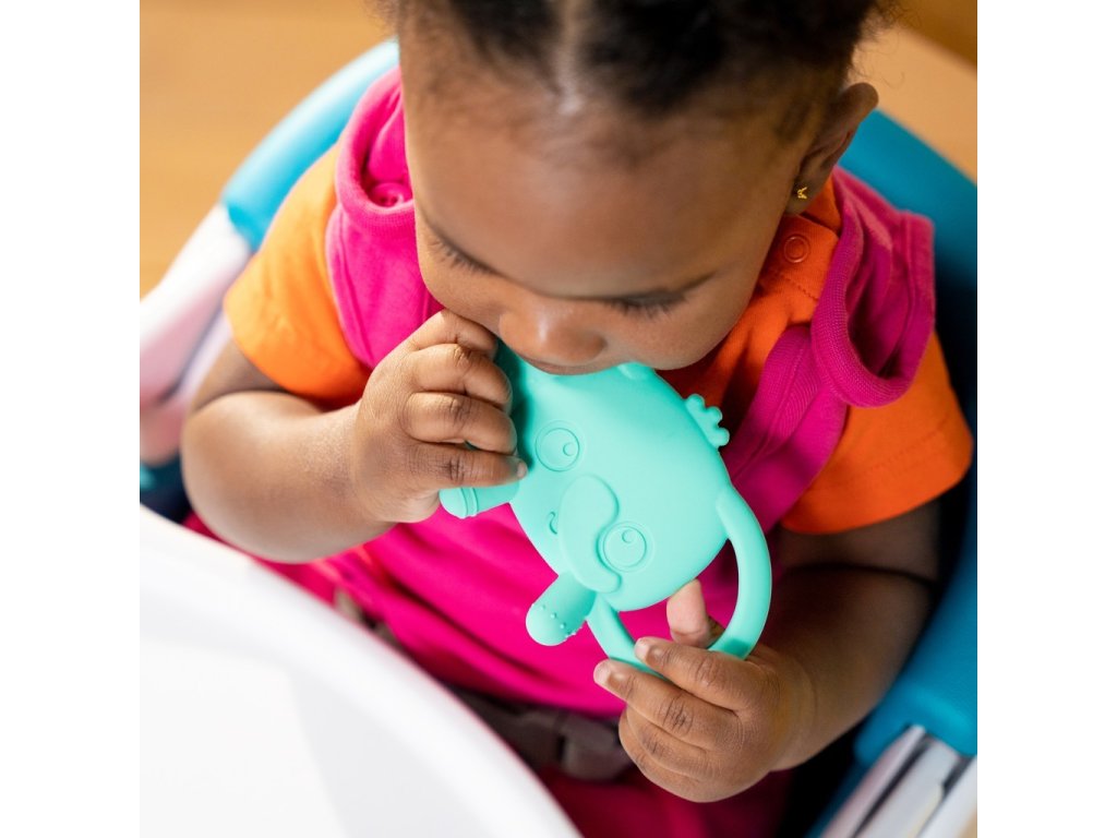 Tento sloní kamarád s jednotným tělem má různě strukturované povrchy, které uklidňují bolavé dásně dítěte. Díky snadno uchopitelnému designu ho může dítě pevně držet a masírovat si dásně, kdykoli je to potřeba. Tento kamarád z džungle podporuje rozvoj jemné motoriky a smyslových dovedností, protože dítě kouše a chytá barevné sloní uši, chobot a další věci. Pomozte dítěti zkrotit jeho rostoucí zoubky pomocí tohoto poutavého kousátka.
