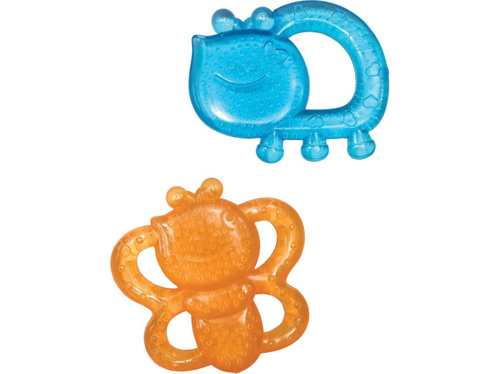 Dvě chladicí kousátka ve tvaru motýlka a berušky pomůžou vašemu dítěti chladit dásně při prořezávání prvních zoubků.