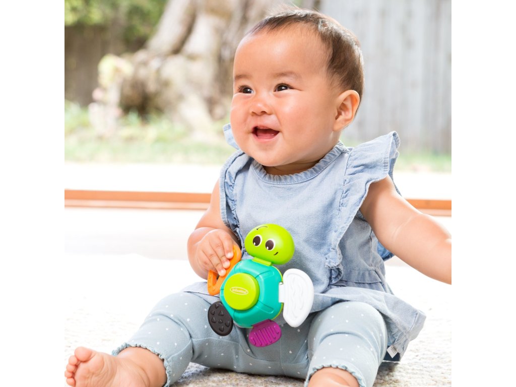 Hračka v podobě roztomilé želvičky nabízí množství ohebných a pohyblivých částí ke zkoumání. Jednotlivé části těla želvičky mají různé textury pro stimulaci hmatu. Hračka pomáhá rozvíjet jednotlivé smysly i motorické dovednosti dítěte.