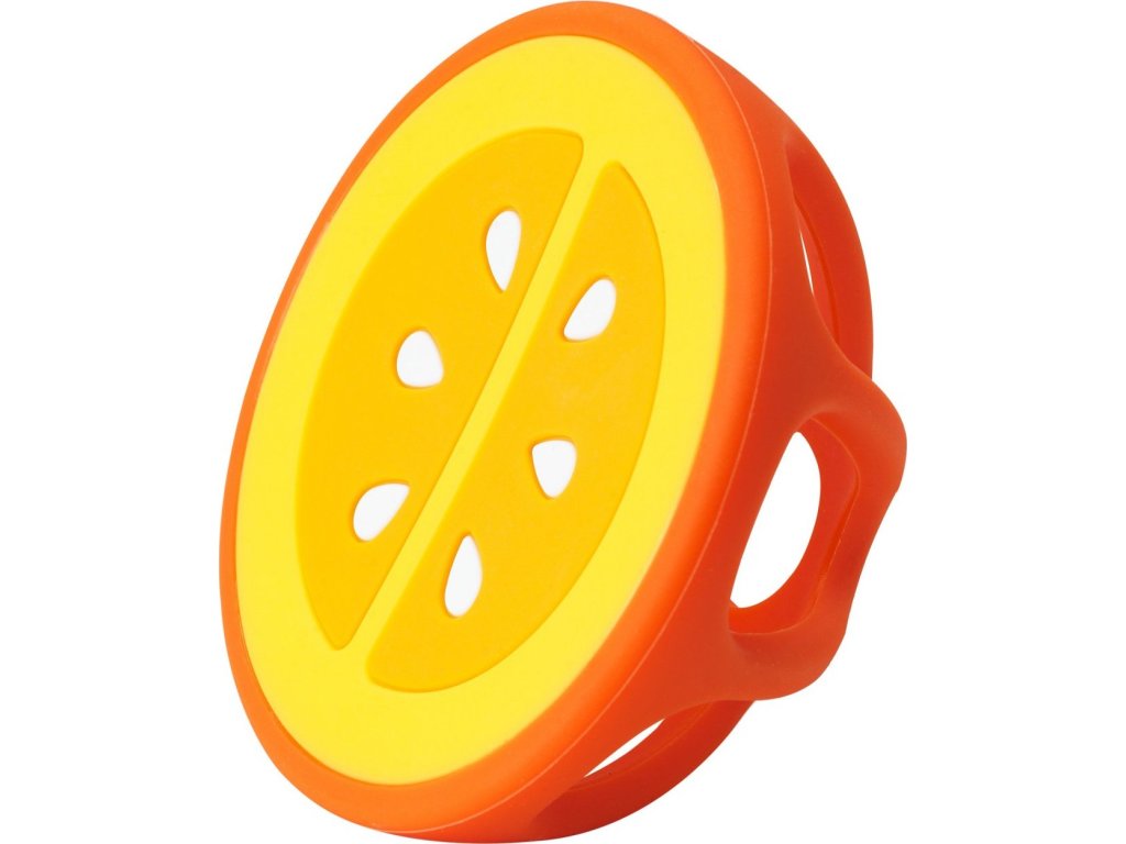 Kousátko v podobě pomeranče je vyrobené z jemného měkkého silikonu. Různorodé textury lákají dítě ke zkoumání v ústech a pomáhají tak při prořezávání prvních zoubků. Lehounké kousátko má tvar pro snadné uchopení malými dětskými ručičkami.