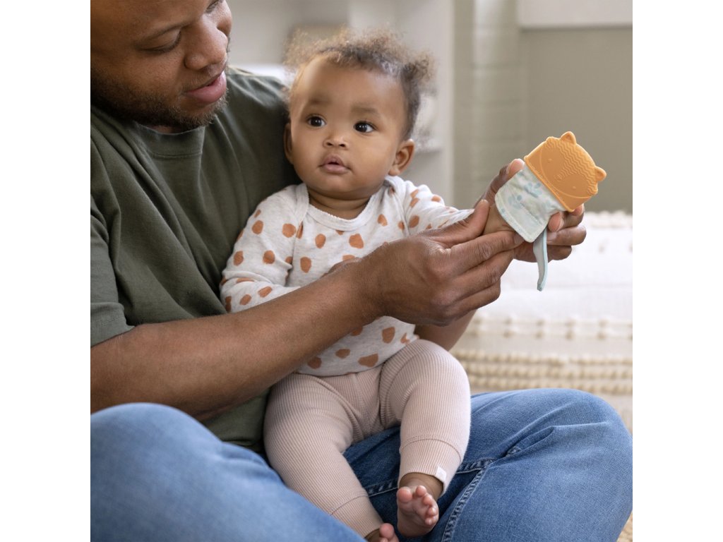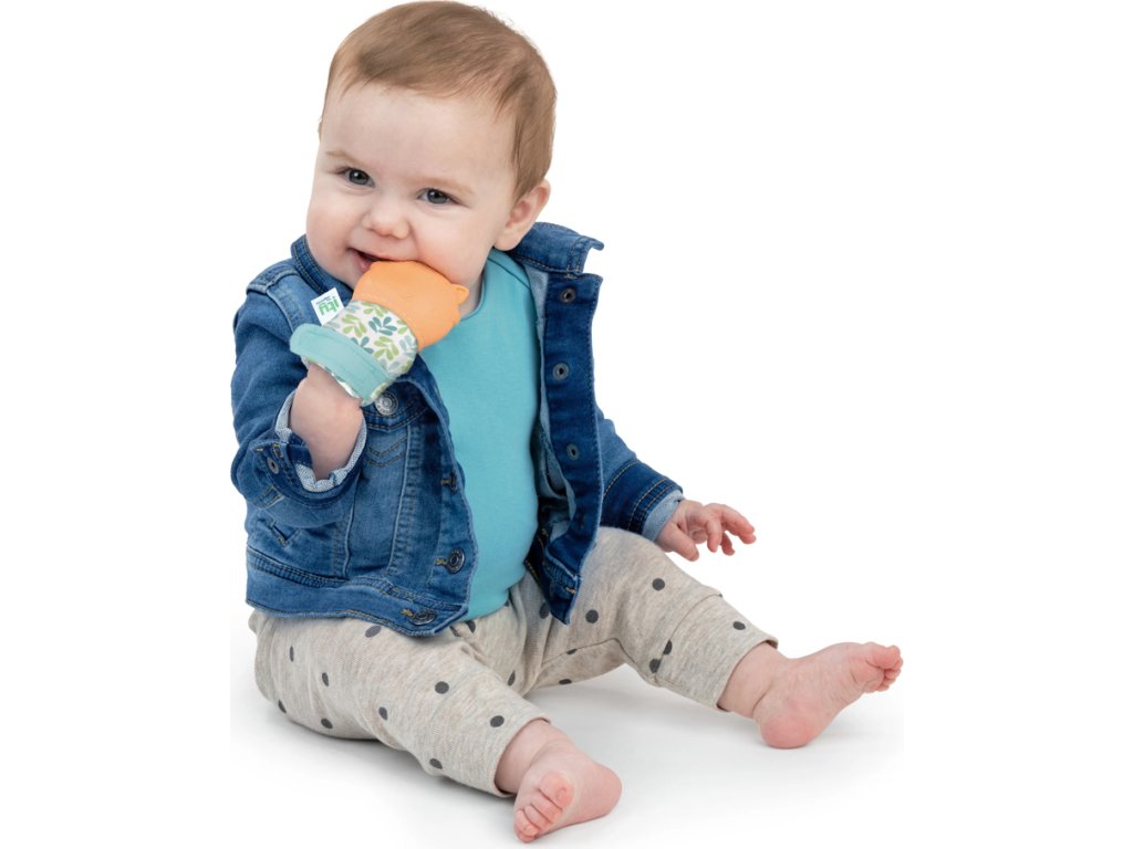 Ingenuity Teething Mitt – Nally je jako stvořené pro bolavé dásně vašeho děťátka. Tato dětská rukavice na prořezávání zoubků obsahuje rozkošnou postavičku lišky Kitt. Texturovaná rukavice na prořezávání zoubků je vyrobena ze silikonu bez BPA. Kousátko masíruje bolavé dásně děťátka a poskytuje úlevu rostoucím zoubkům. Nastavitelný popruh rukavice zajišťuje bezpečné uchycení, jak děťátko roste. Design rukavičky je ideální pro dětičky, které ještě neumí uchopit kousátko, a také pomáhá předcházet poškrábání děťátka. Textura pomáhá miminku objevovat a zkoumat hmat.