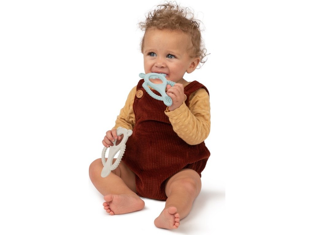 - sada 2 kousátek s hladkou texturou, silikonovými štětinami a prohlubněmi, které pomáhají uklidnit bolavé dásně v každém stadiu prořezávání zoubků