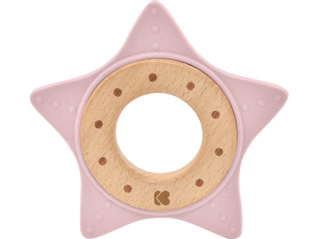 Kousátko KikkaBoo ve tvaru hvězdy je vyrobené z bezpečného, jemného silikonu a bukového dřeva. Různorodé textury kousátka lákají dítě ke zkoumání v ústech a pomáhají při prořezávání jeho prvních zoubků. Tvar kousátka umožňuje jeho snadné uchopení malými dětskými ručičkami.