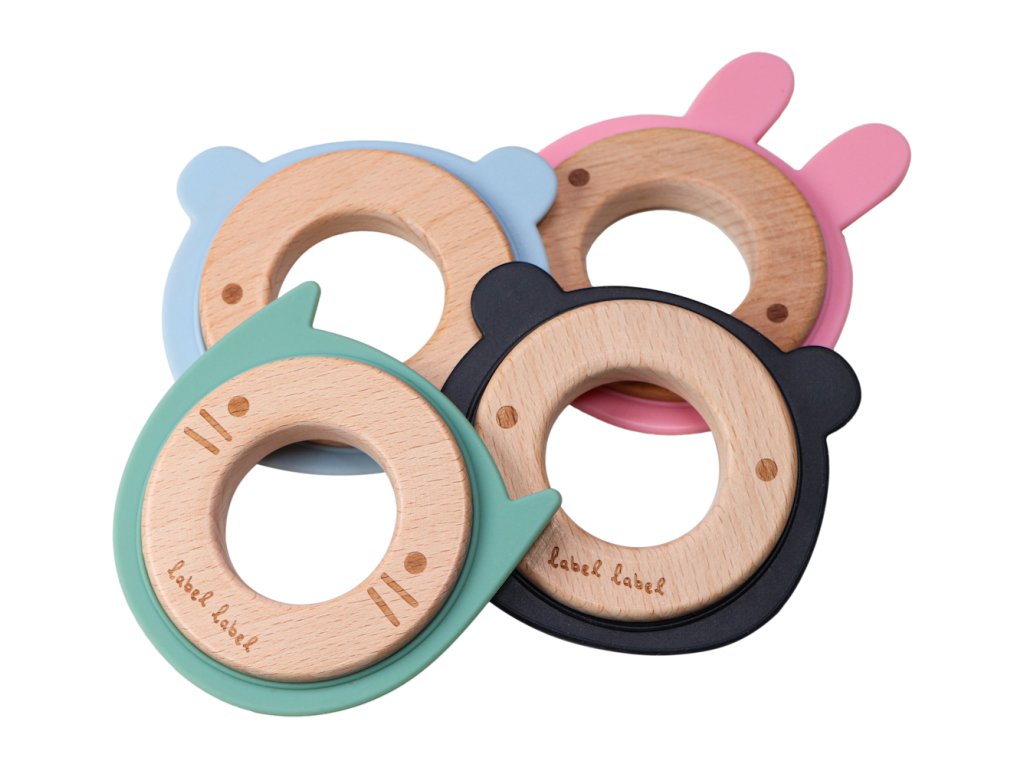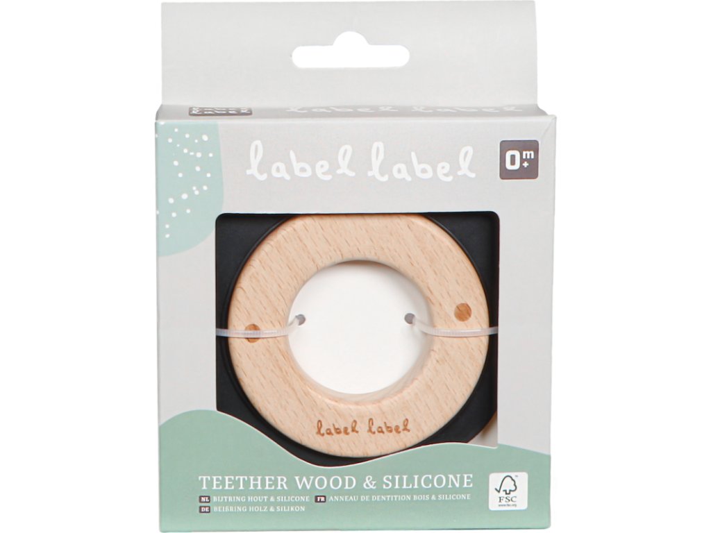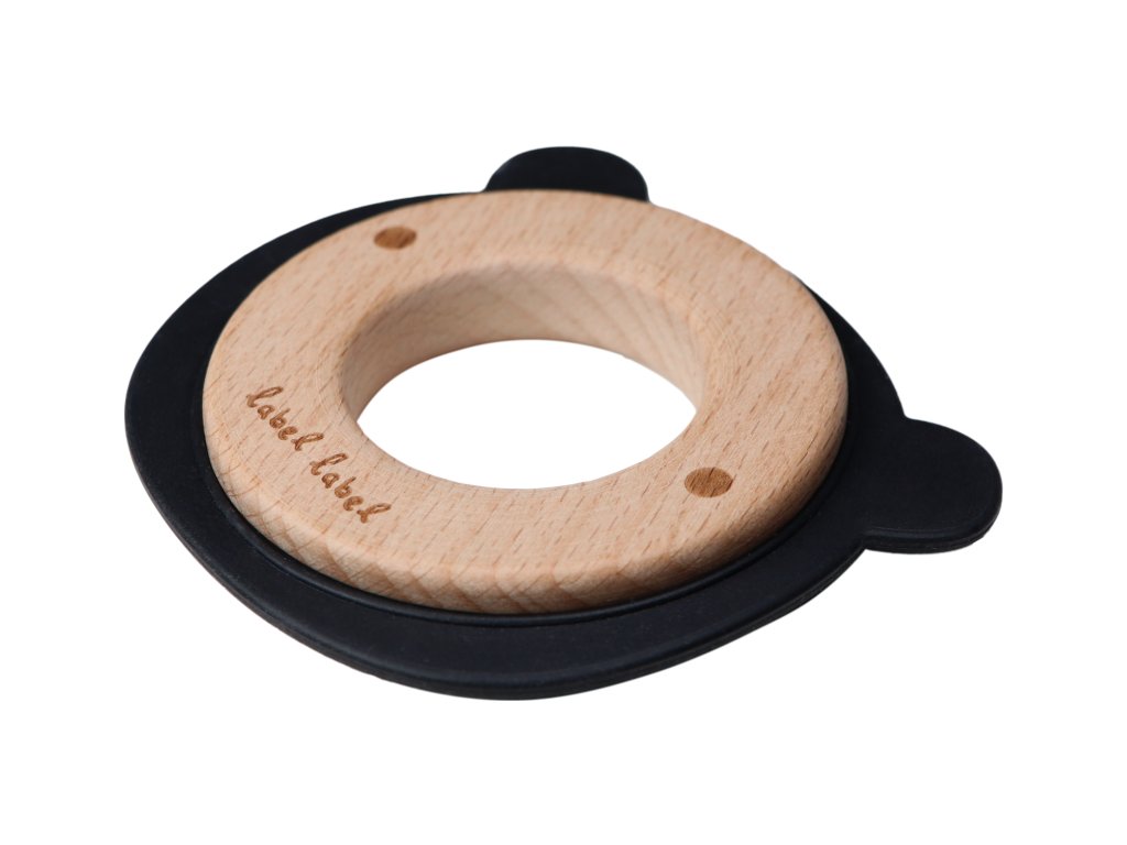 Label Label Kousátko Medvídek dřevo & silikon, černé