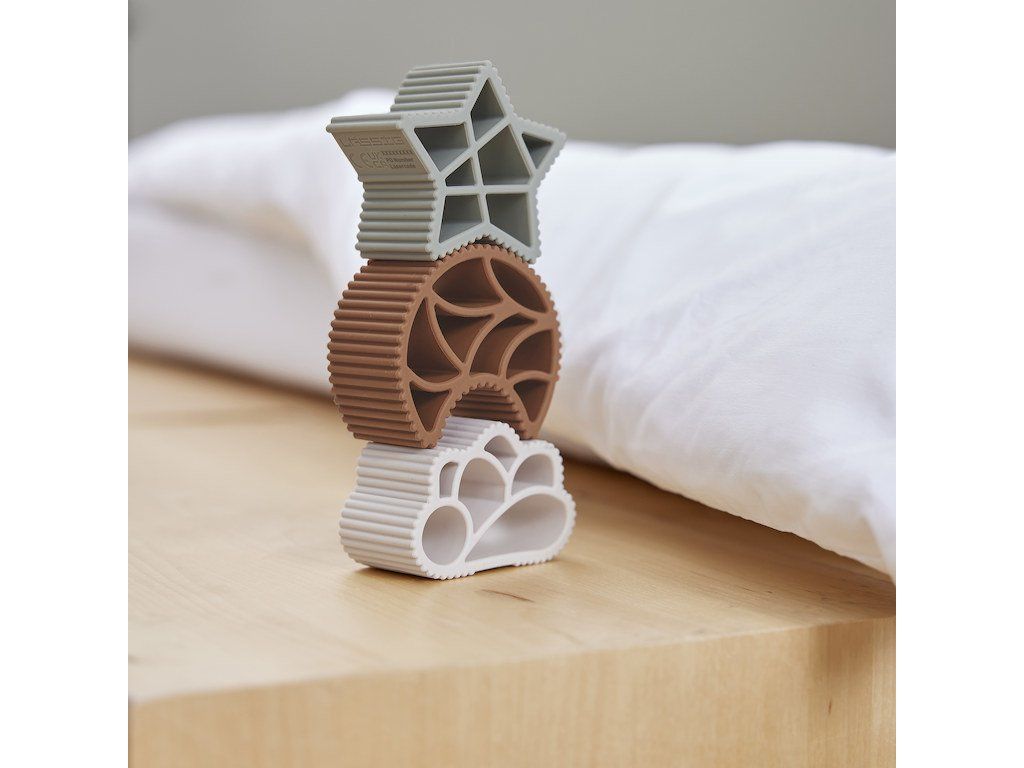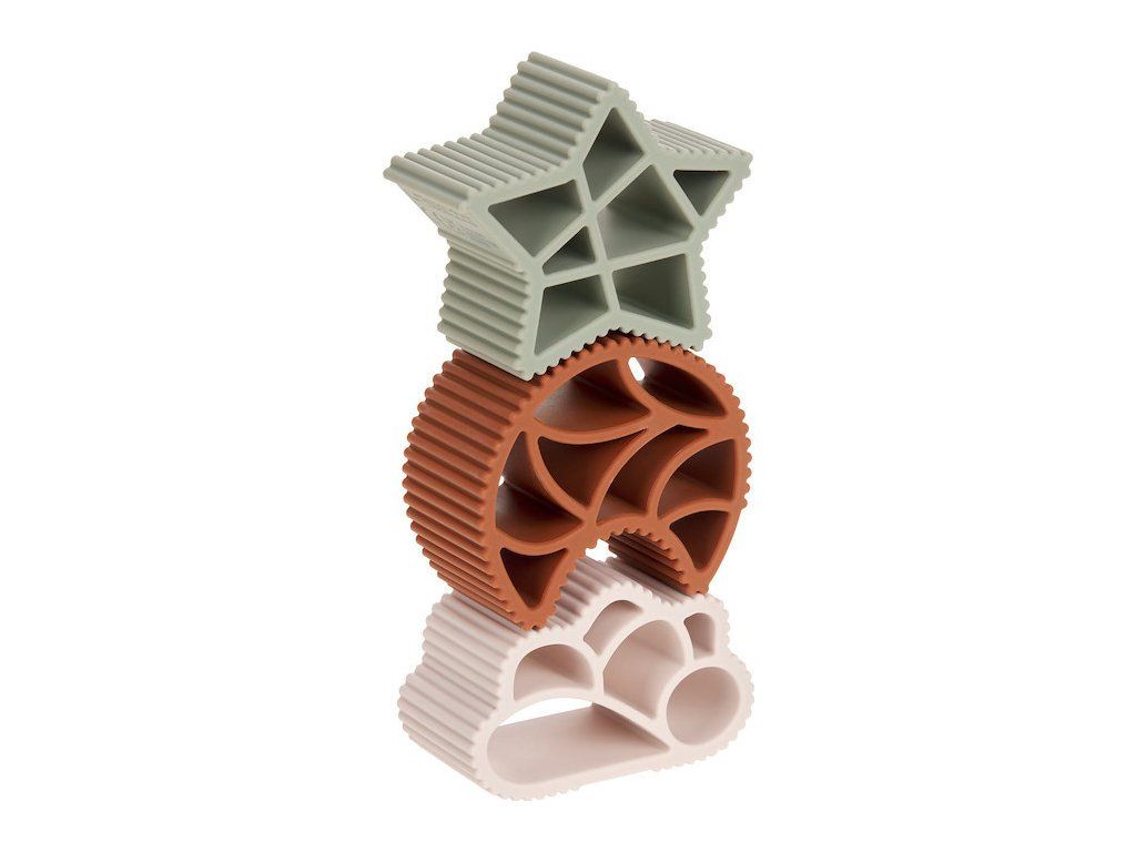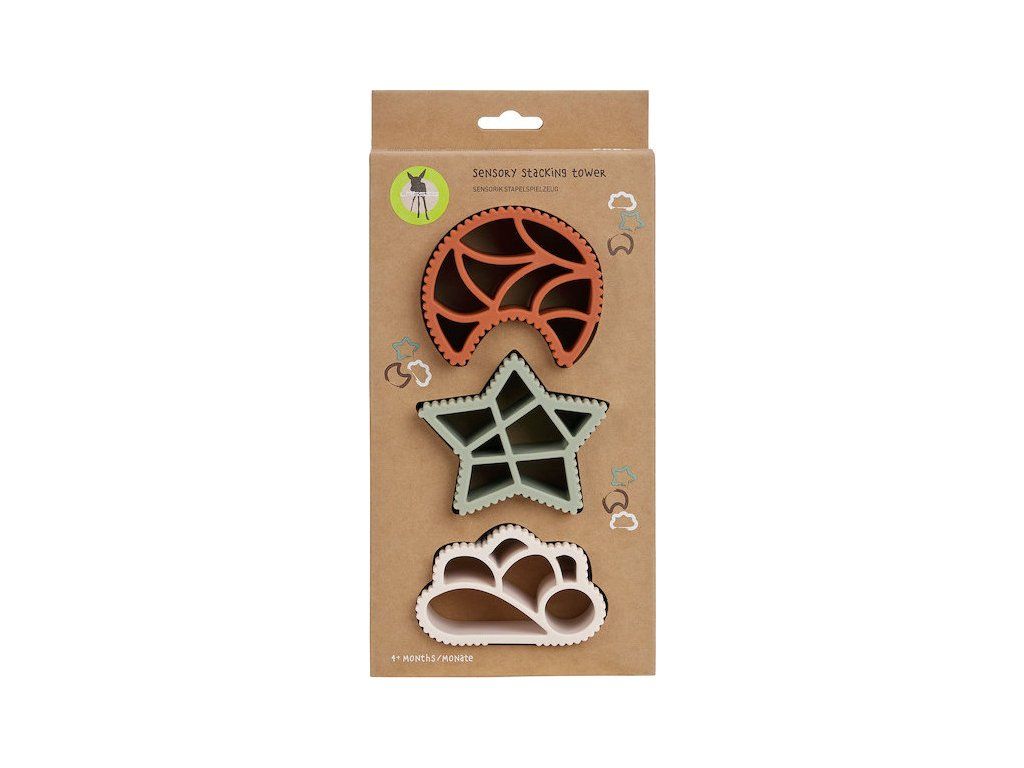 Sencory Stacking Tower Little universe je jedním z dalších výrobků značky Lässig, vyznačujícím se vysokou kvalitou materiálů, jejich zpracováním a svojí funkčností. Jedná se o třídílnou sadu, která je vhodná k procvičování uchopování, ke kousání a k redukci bolesti v období prořezávání zoubků i ke skládání. Různé struktury, tvary a barvy pomáhají trénovat smyslové vnímání dítěte způsobem přiměřeným jeho věku. smyslová třídílná silikonová hračka pomáhá stimulovat zrak, hmat a motorické dovednosti dítěte různé struktury, tvary a barvy vhodné pro první pokusy o uchopování předmětů ideální pro kousání při prořezávání prvních zoubků rozvíjí dovednost skládání neobsahuje BPA pružný materiál, který se snadno čistí dlouhá životnost vhodné pro děti od 4 měsíců rozměry: délka 8,4 cm, šířka 4 cm, výška 17 cm materiál: 100% silikon hmotnost: 0,228 kg Upozornění pro spotřebitele: Nesterilizujte v páře nebo vařením. Nesterilizujte v mikrovlnné troubě. Nevkládejte do pračky nebo myčky nádobí.