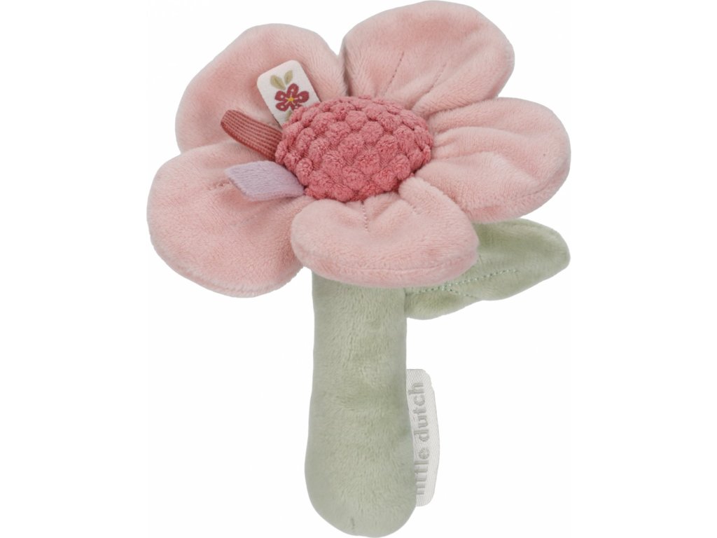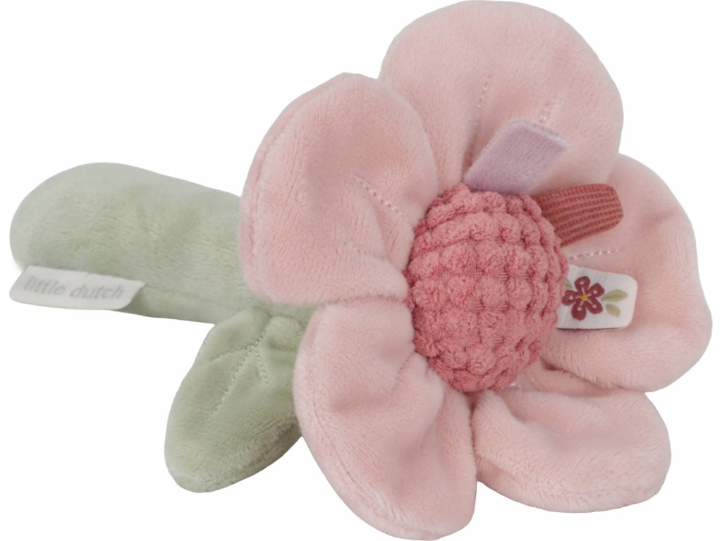 Plyšová chrasticí kytička s šusticími okvětními lístky má tvar pro snadné uchopení dětskými ručičkami.