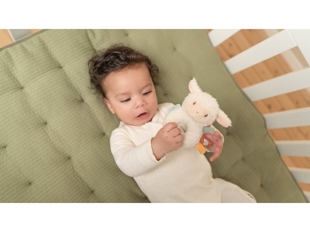 Roztomilé chrastítko v podobě ovečky z jemného plyše je přizpůsobené malým dětským ručičkám. Hračka podporuje smysly a zvídavost dítěte a jeho jemnou motoriku.