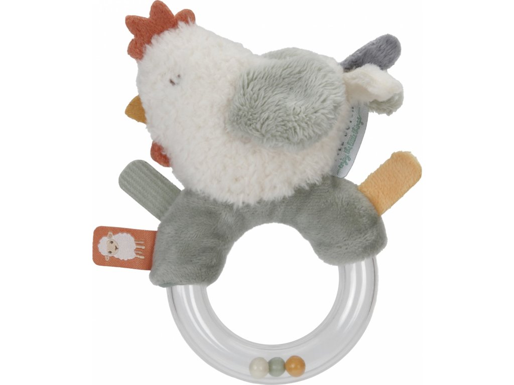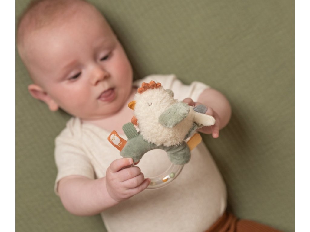 Originální chrastítko v podobě průhledného kroužku s chrasticími korálky a plyšovou slepičkou je ideální jako první hračka pro vaše miminko. Chrastítko má tvar pro snadné uchopení a různorodé textury pro zkoumání rukama i ústy. Křídla ptáčka při zmáčknutí šustí.