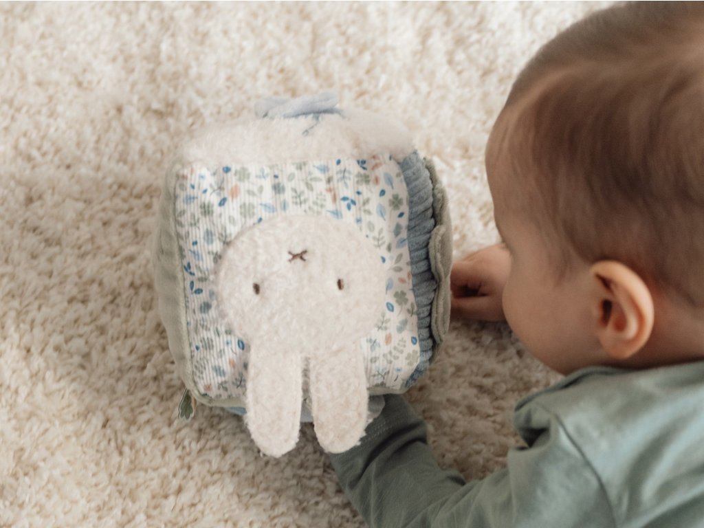 Little Dutch Kostka textilní s aktivitami králíček Miffy Lucky Leaves