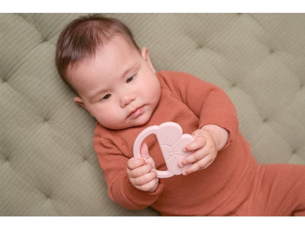 Měkké silikonové kousátko s různými texturami láká dítě ke zkoumání v ústech a pomáhá tak při prořezávání prvních zoubků. Kousátko má tvar pro snadné uchopení dětskými ručičkami.