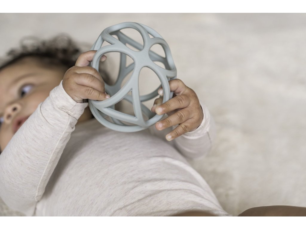 Lehounký míček z jemného silikonu má tvar pro snadné uchopení dětskými ručičkami. Míček láká dítě ke zkoumání rukama i ústy, slouží tak i jako kousátko, což oceníte při prořezávání prvních zoubků vašeho dítěte.