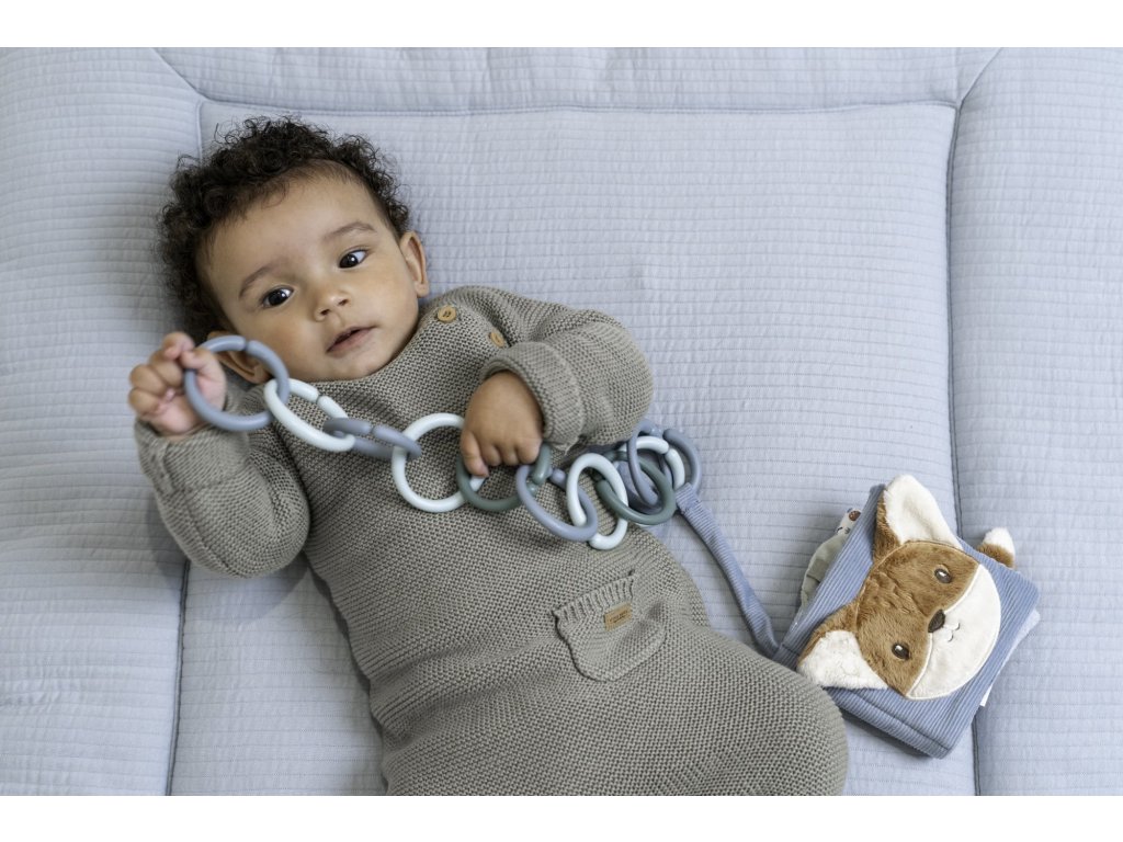 Multifunkční kroužky tvořící po spojení řetěz slouží jako hračka pro děti i jako pomůcka pro připevnění hraček ke kočárku či autosedačce. Dvanáct kroužků vytvoří řetěz ideální délky pro použití v kočárku.