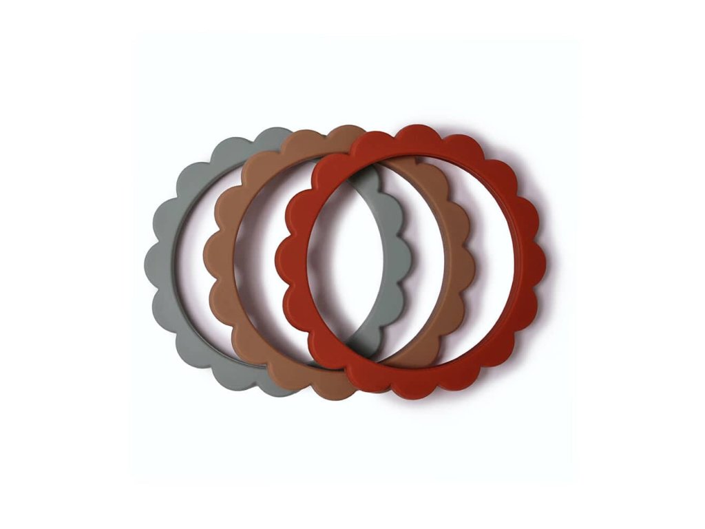 Mushie náramkové hryzátko zo silikónu FLOWER Sunshine / Dried Thyme / Clay
