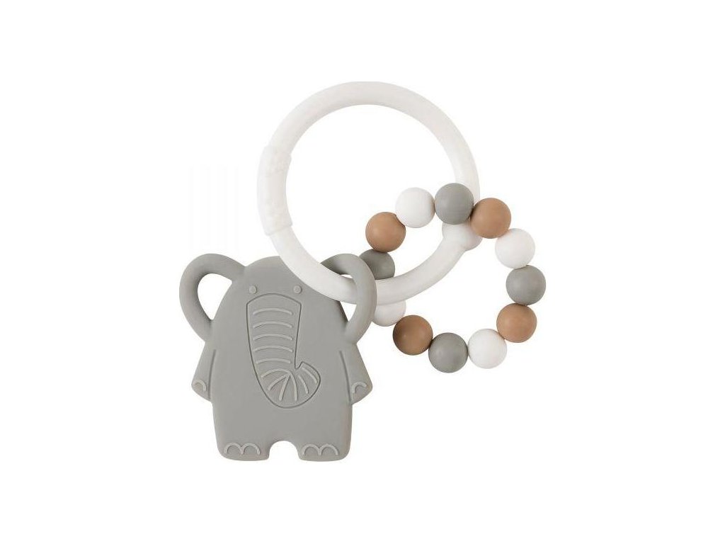 Silikonové kousátko, složené ze tří různých částí, zmírní bolest při prořezávání prvních zoubků. Může být použito i jako jednoduché chrastítko a také díky svému tvaru a designu na rozvoj motorických dovedností malých ručiček. Krásný decentní design.Vhodné od 4 měsíců.