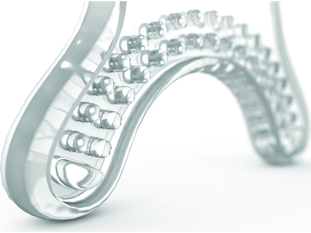 Jeho protáhlý tvar také umožňuje, aby byly promasírované i dásně nad stoličkami.