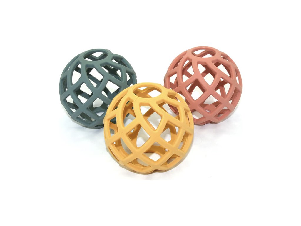 Silikonový kousací míč lze mýt teplou mýdlovou vodou nebo pouze očistit vlhkým hadříkem.