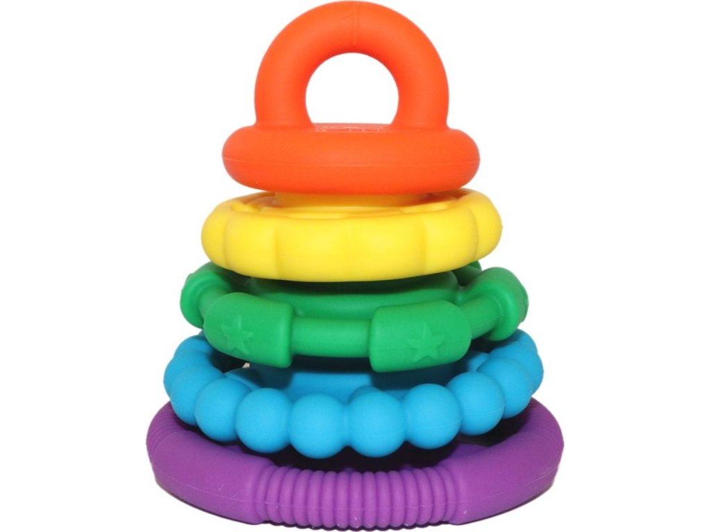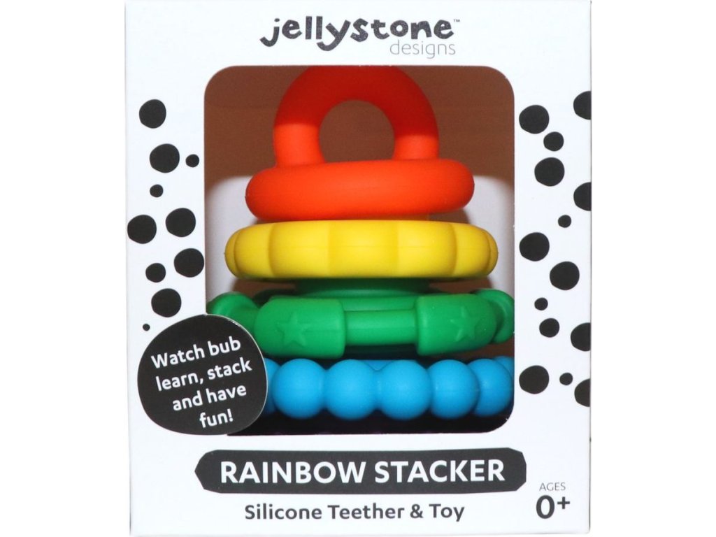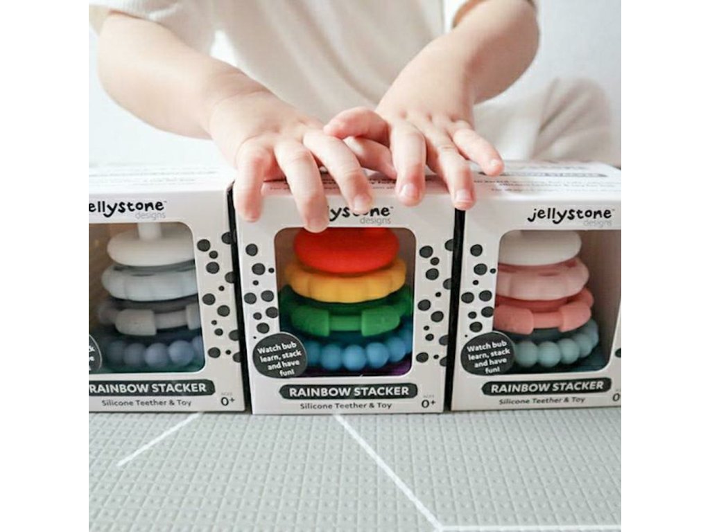Barevná pyramida od Jellystone Designs je dokonalá víceúčelová hračka, protože vaše dítě rychle zjistí, že stohovací kroužky nejsou nic jiného než tolik oblíbená a praktická kousátka.