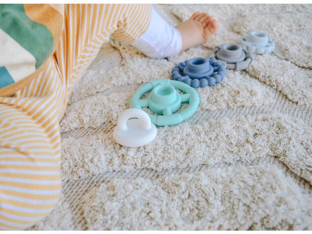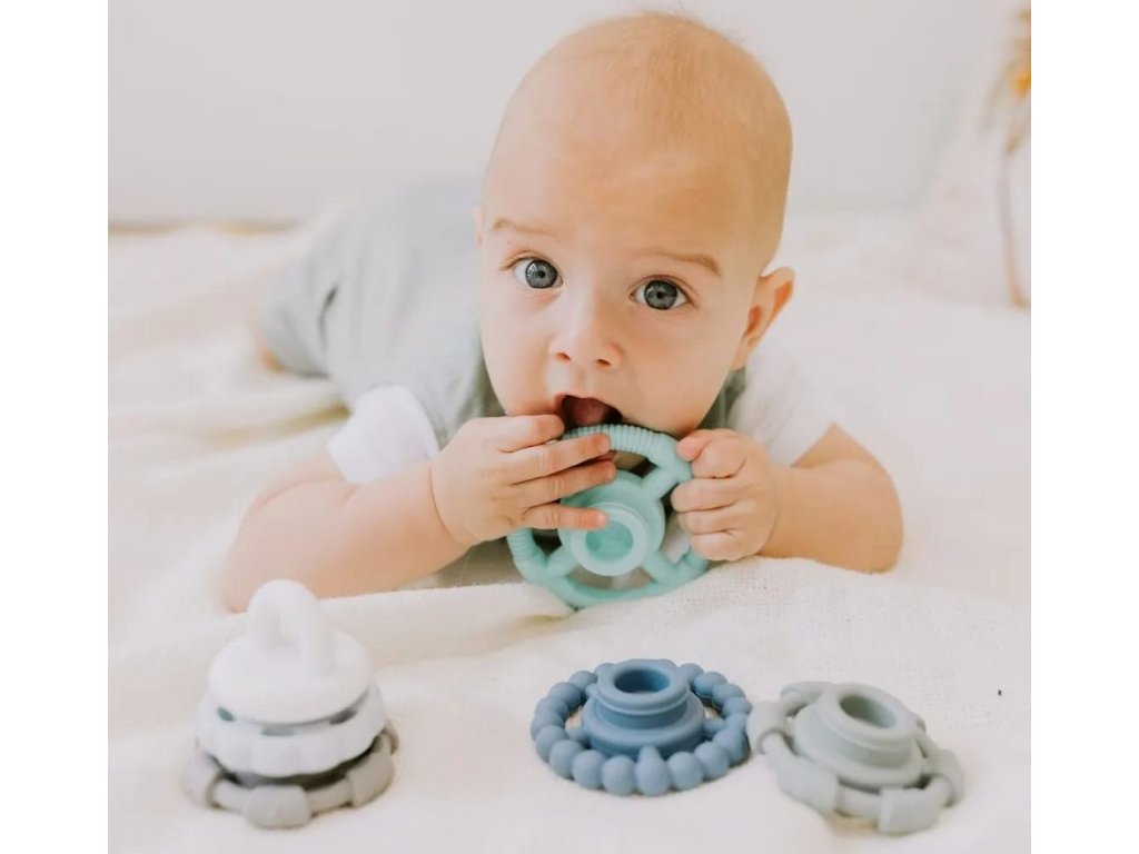 Barevná pyramida od Jellystone Designs je dokonalá víceúčelová hračka, protože vaše dítě rychle zjistí, že stohovací kroužky nejsou nic jiného než tolik oblíbená a praktická kousátka.