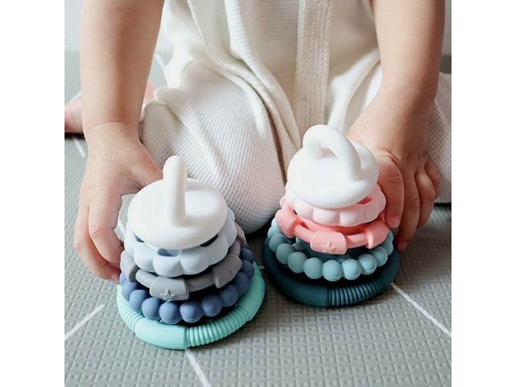 Miminka milují žvýkání uklidňujících silikonových kroužků a starší děti si díky nim procvičují koordinaci ruka-oko skládáním kroužků, kreativním myšlením a dovednostmi při řešení problémů k tomu, aby pyramidu znovu složily do původního stavu.