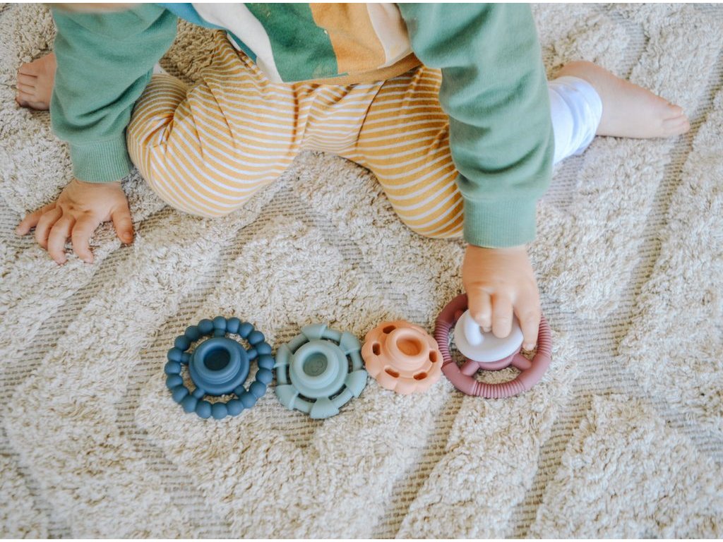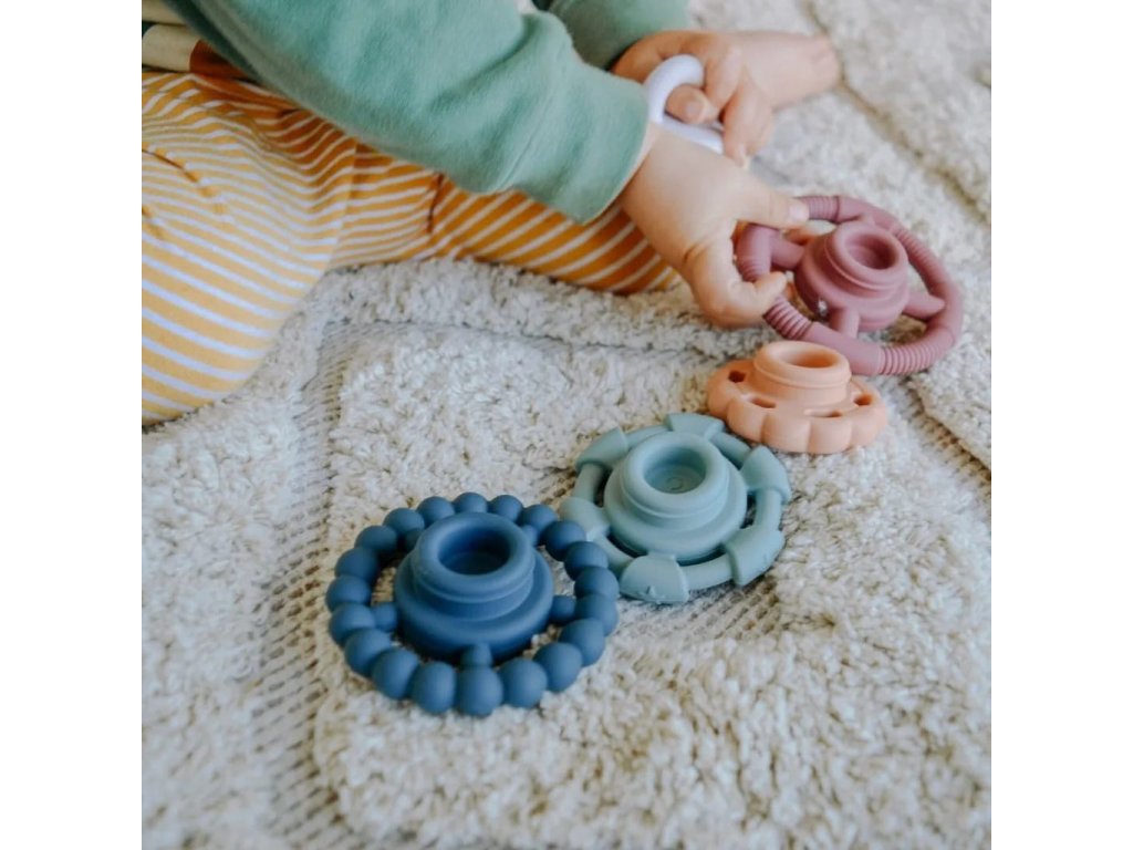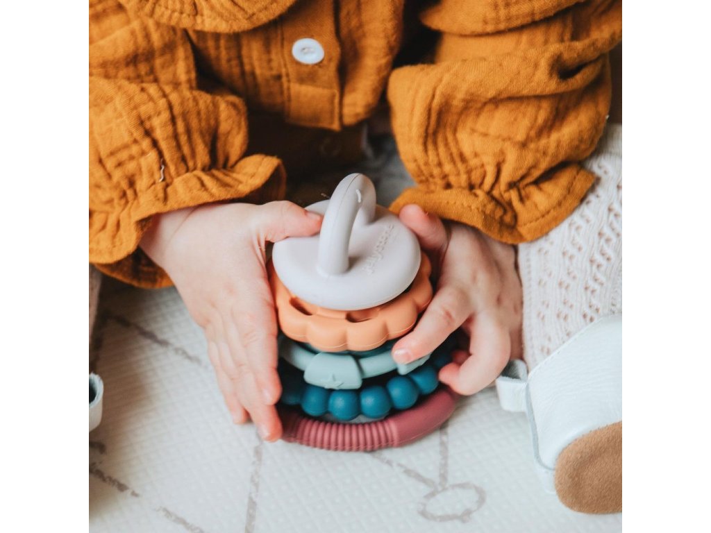 Miminka milují žvýkání uklidňujících silikonových kroužků a starší děti si díky nim procvičují koordinaci ruka-oko skládáním kroužků, kreativním myšlením a dovednostmi při řešení problémů k tomu, aby pyramidu znovu složily do původního stavu.