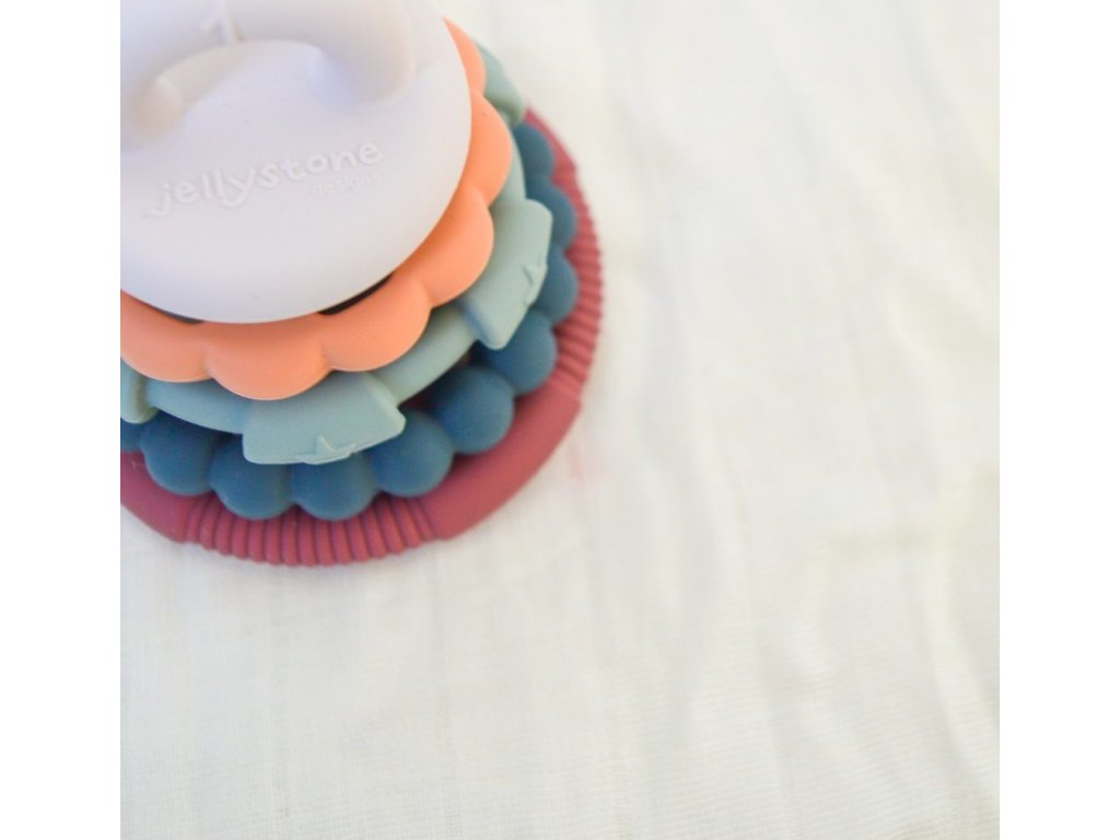 Barevná pyramida od Jellystone Designs je dokonalá víceúčelová hračka, protože vaše dítě rychle zjistí, že stohovací kroužky nejsou nic jiného než tolik oblíbená a praktická kousátka.