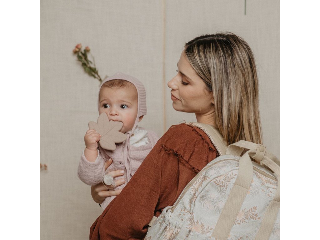 Silikonové kousátko ve tvaru listu s drobnými výstupky pro úlevu pro dětské dásně. Evoluční kousátka jsou bezpečná, ergonomická, lehká a velmi zábavná.