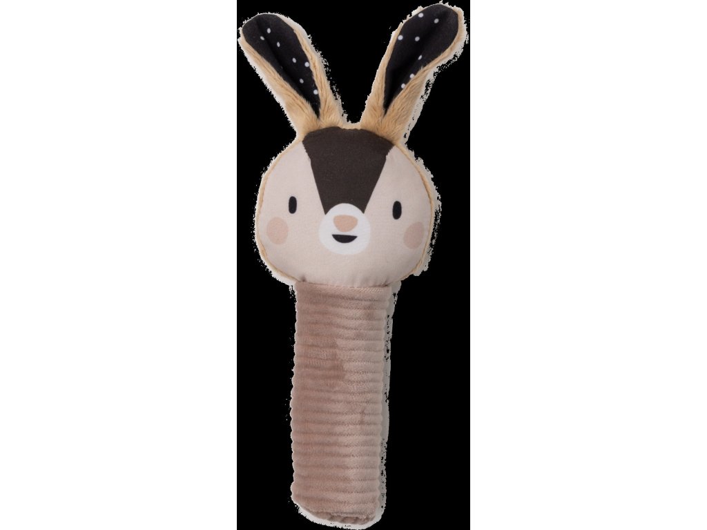 - Pískací králíček: Pískací hračka s hlavou králíčka a šustivými oušky poskytuje další smyslové podněty a přispívá k porozumění příčině a následku.