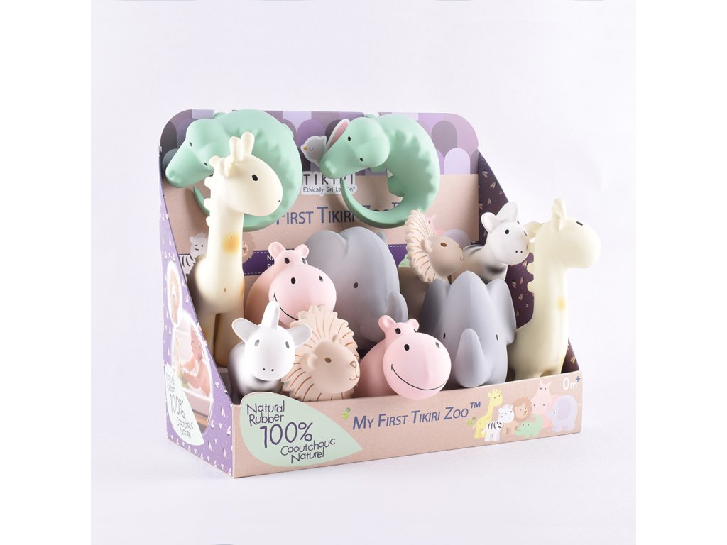 - Tikiri Zoo – chrastítko a kousátko je vyrobeno z jemné přírodní gumy z kaučukového stromu a je ideální jako kousátko při prořezávání zoubků