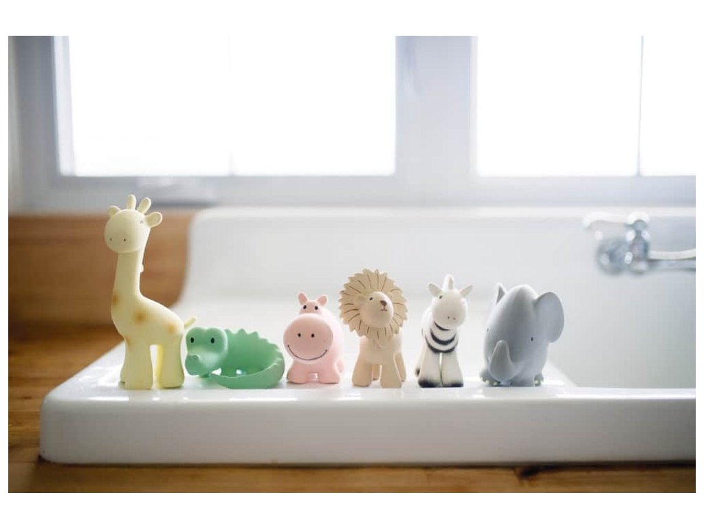 Roztomilé Tikiri zvieratká sú vyrobené z príjemne jemnej mäkkej prírodnej gumy z kaučukového stromu Hevea. Zvieratká nemajú žiadny otvor, ktorým by sa do vnútra mohla dostať vlhkosť, takže sú ideálne ako hračka do kúpeľa alebo hryzátko pri prerezávajúcich sa zúbkoch. Deti obľubujú špecifickú príjemnú vôňu a chuť prírodnej gumy a zaujme ich aj zvuk jemne znejúcej hrkálky vnútri zvieratka. Prírodná guma vyrobená z miazgy kaučukového stromu Hevea, ktorá je pravidelne odoberaná tak, aby strom netrpel, šetrne a udržateľne Ekologický, v prírode rozložiteľný materiál, bezpečný aj pre tie najmenšie bábätká Ručne maľované netoxickými rastlinnými farbami Neobsahuje BPA, PVC, ftaláty ani žiadne iné škodlivé látky Vhodné od narodenia Vyrobené na Srí Lanke vo fair trade podmienkach Vďaka ručnej práci je každé zvieratko jedinečné a prípadné drobné nerovnosti materiálu a odlišnosti v kresbe sú prirodzenou vlastnosťou Veľkosť zvieratiek: Hrošík: 8 x 12 x 5 cm Žirafka: 17 x 8 x 5 cm Zebra: 11 x 11 x 5,5 cm Sloník: 9 x 11 x 7 cm Levík: 11 x 7 x 5,5 cm Krokodíl: 5,5 x 9 x 9 cm