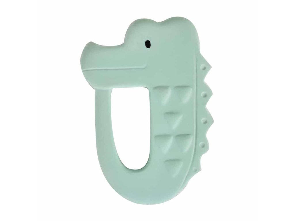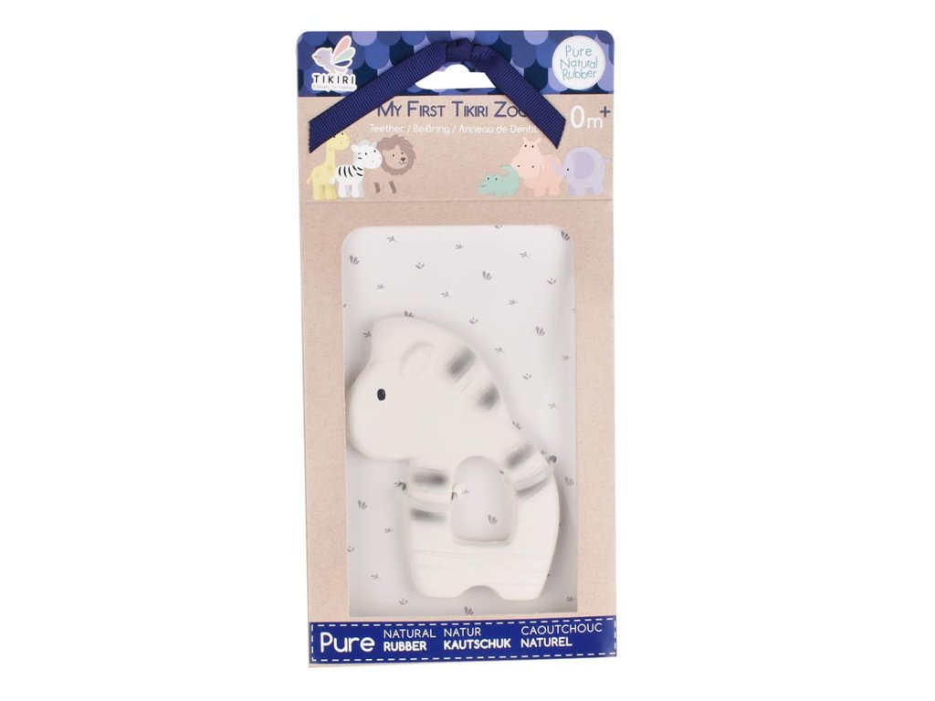 Roztomilé Tikiri ZOO hryzátka sú vyrobené z príjemne jemnej mäkkej prírodnej gumy z kaučukového stromu Hevea. Hryzátka nemajú žiadny otvor, ktorým by sa do vnútra mohla dostať vlhkosť, takže sú ideálne ako hračka do kúpeľa alebo hryzátko pri prerezávajúcich sa zúbkoch. Deti obľubujú špecifickú príjemnú vôňu a chuť prírodnej gumy a zaujme ich aj zvuk jemne znejúcej hrkálky vnútri zvieratka. Prírodná guma vyrobená z miazgy kaučukového stromu Hevea, ktorá je pravidelne odoberaná tak, aby strom netrpel, šetrne a udržateľne Ekologický, v prírode rozložiteľný materiál, bezpečný aj pre tie najmenšie bábätká Ručne maľované netoxickými rastlinnými farbami Neobsahuje BPA, PVC, ftaláty ani žiadne iné škodlivé látky Vhodné od narodenia Vyrobené na Srí Lanke vo fair trade podmienkach Vďaka ručnej práci je každé hryzátko jedinečné a prípadné drobné nerovnosti materiálu a odlišnosti v kresbe sú prirodzenou vlastnosťou Veľkosť hryzatiek: Hrošík: 8 cm Žirafka: 15 cm Zebra: 11 cm Sloník: 11 cm Levík: 12 cm Krokodíl: 11 cm
