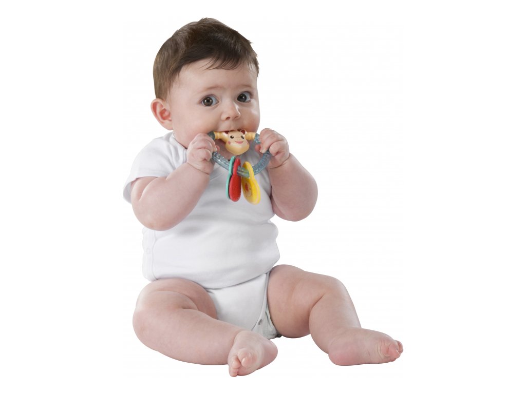 Kroužek je vyroben z měkkého materiálu, který je ideální ke žvýkání a zmírnění bolesti dětských dásní při prořezávání zoubků.