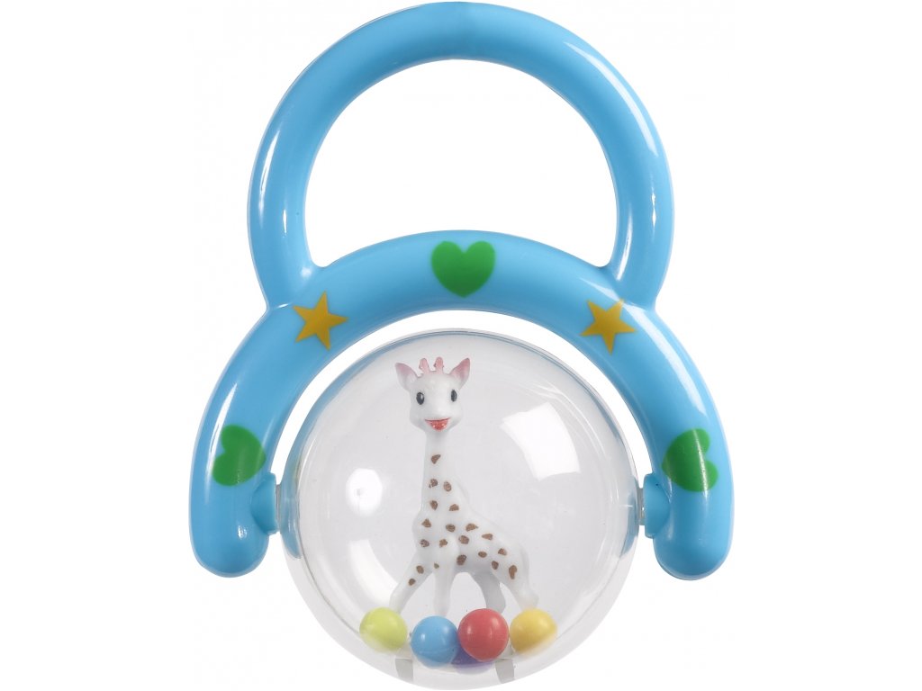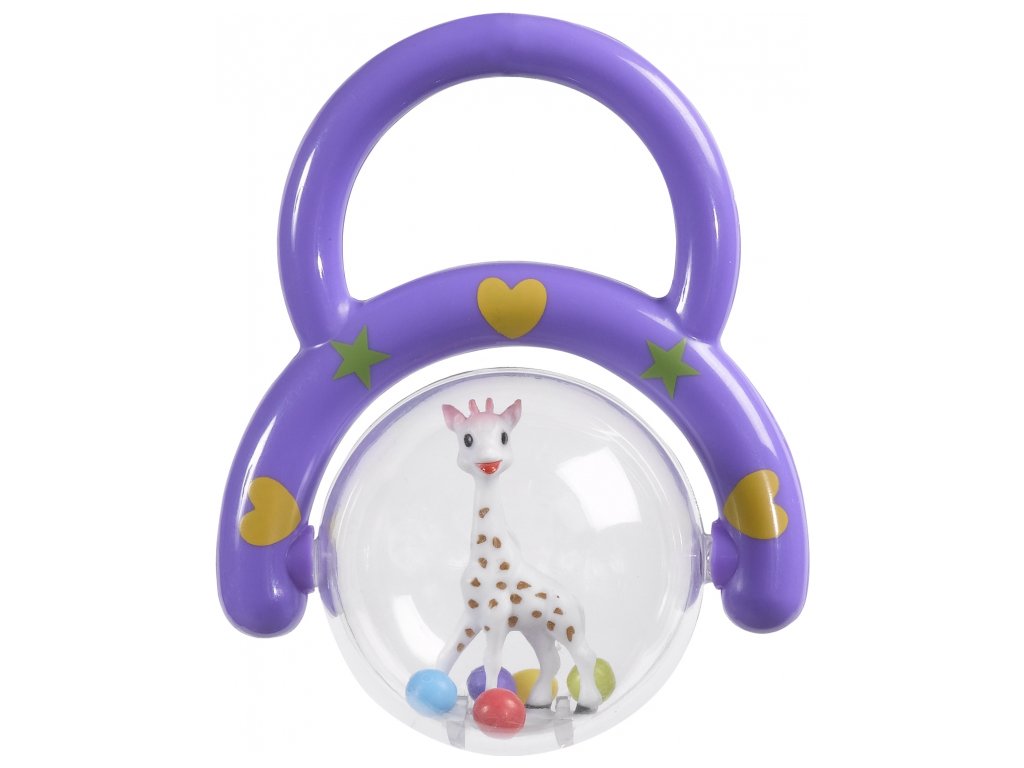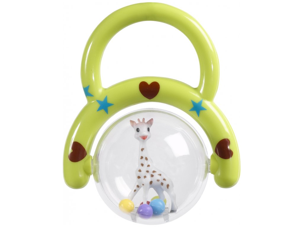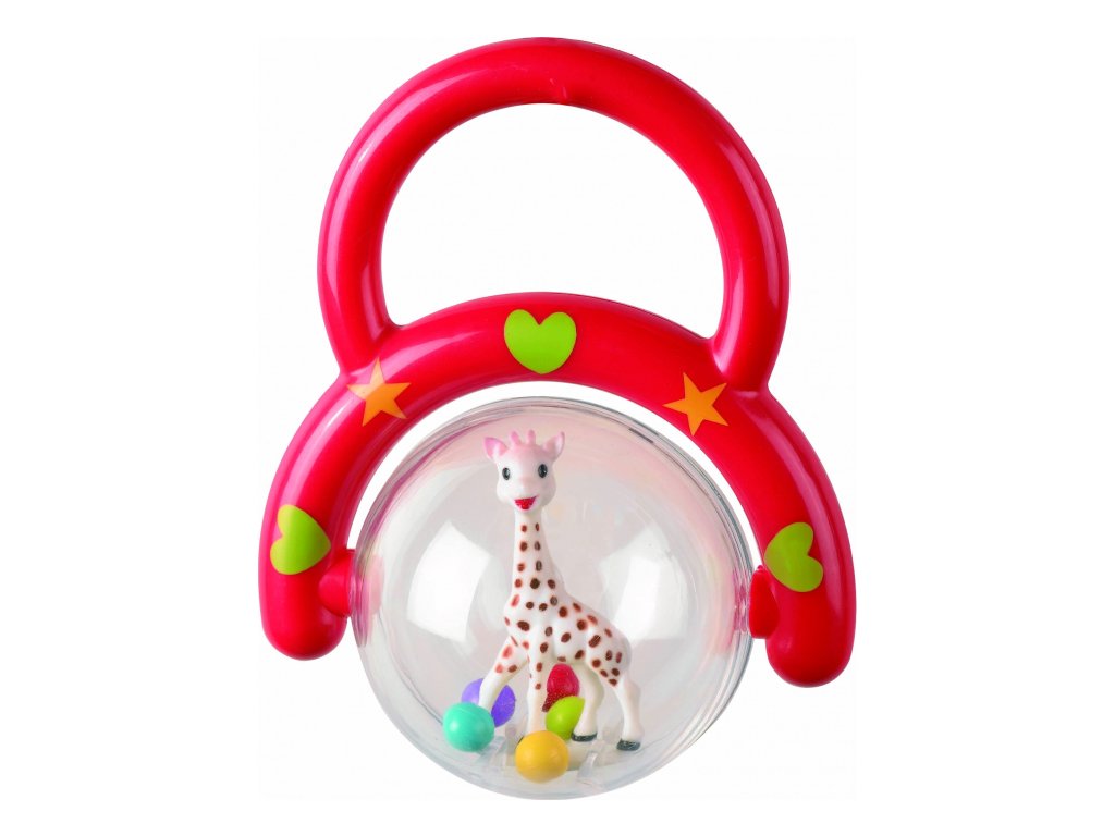 Díky držadlu jej dítě může snadno uchopit a průhledná bublina s malou žirafou Sophií uvnitř se otáčí kolem dokola. Zatřeste a užívejte si jemné chrastění barevných kuliček.