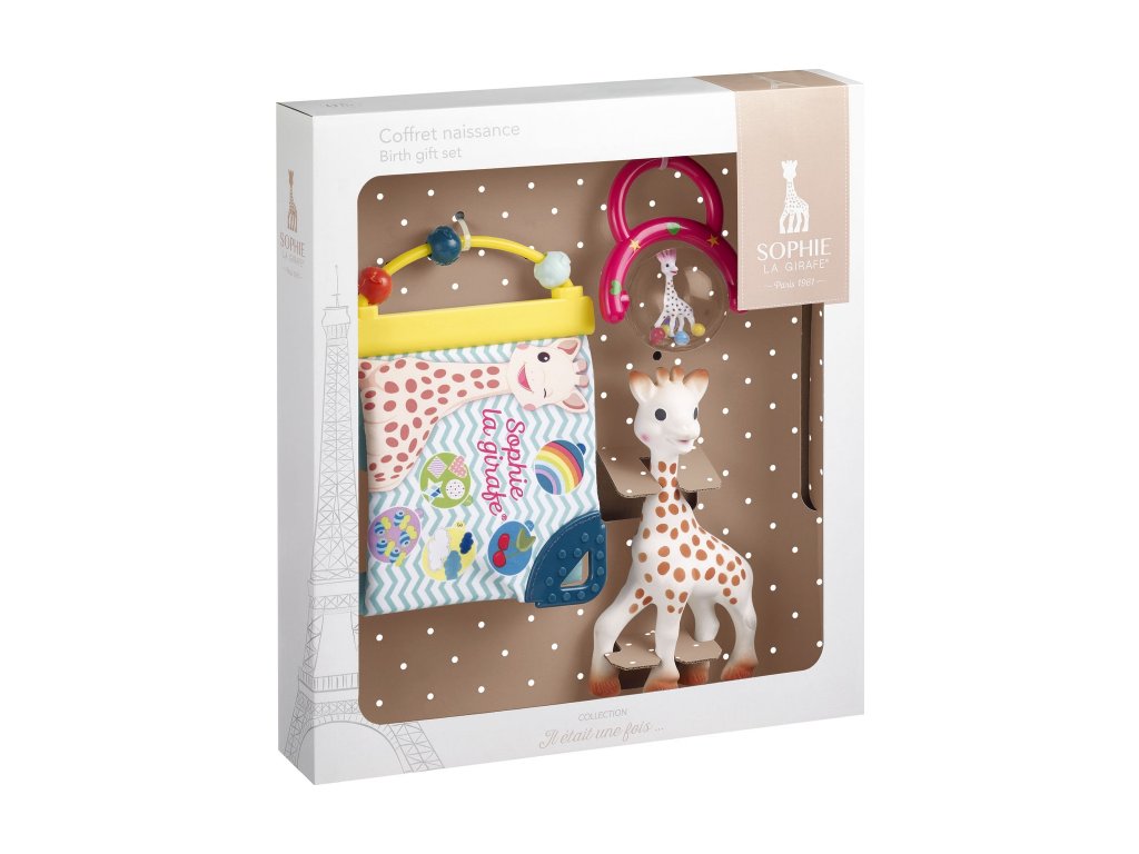 Vulli Dárkový set: žirafa Sophie + knížka + chrastítko